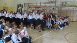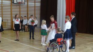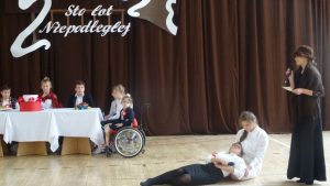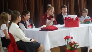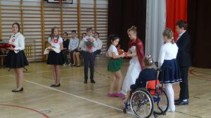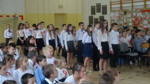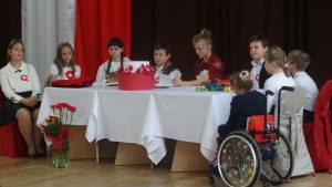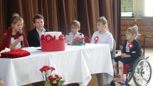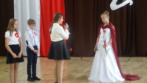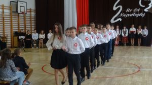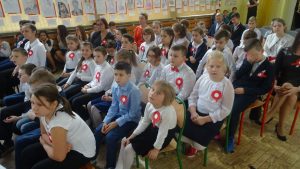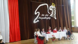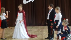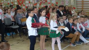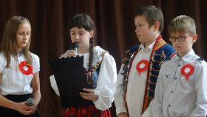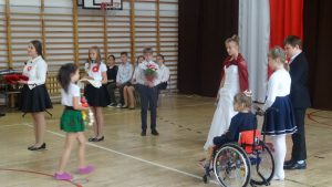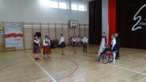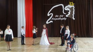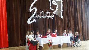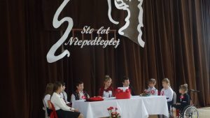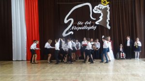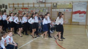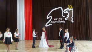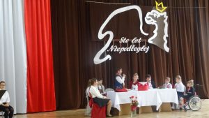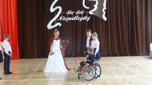 Uczniowie i nauczyciele Szkoły Podstawowej w Kluczkowicach z okazji 100-lecia odzyskania przez Polskę niepodległości zorganizowali przyjęcie urodzinowe dla wyjątkowej Jubilatki! Powitanie Niepodległej poprzedziły fanfary, życzenia od dzieci oraz moc prezentów: bukiet kwiatów symbolizujący jej nieprzemijającą urodę i blask wolności, chleb i sól – symbol polskiej gościnności, purpurowa szata – znak zwycięstwa, niepokonanego ducha narodu, różaniec – symbol niezachwianej wiary Polaków. Jednym z darów kluczkowickiej młodzieży był polonez.