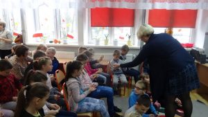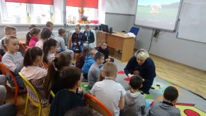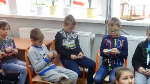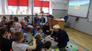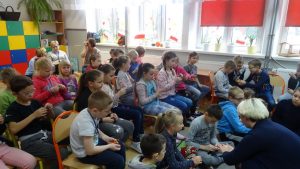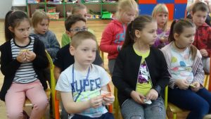 21 listopada 2018r. klasy IIa, IIbi, III SP gościły panią Agnieszkę Kunę, pracownicę firmy Geomax produkującej lubiane przez wszystkich krówki. Celem spotkania było zapoznanie dzieci ze specyfiką tego zawodu. Uczniowie mieli okazję zapoznać się z procesem produkcji, jak również pakowania cukierków. Na koniec spotkania dzieci mogły skosztować przyniesionych przez panią Agnieszkę krówek. Wszyscy bawili się wyśmienicie. Bardzo dziękujemy pani Agnieszce, jak również firmie Geomax, za bardzo ciekawe zajęcia.