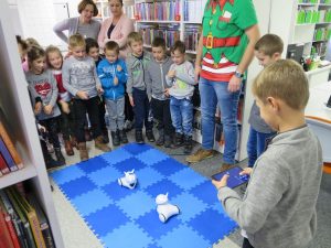Wszyscy wiedzą, że w bibliotece nie można się nudzić! Przekonali się o tym uczniowie pierwszej klasy, którzy w zeszłym tygodniu odwiedzili naszą opolską „fajną bibliotekę”. Pan Marcin wprowadził uczniów w tajniki programowania robotów, którymi można pobawić się w czytelni dla najmłodszych. Biblioteka okazała się miejscem bardzo przyjaznym i interesującym dla naszych małych czytelników.