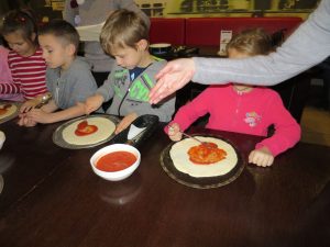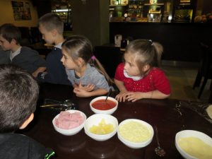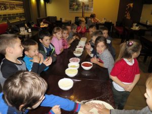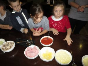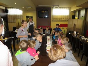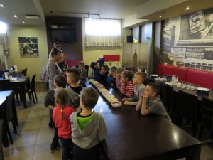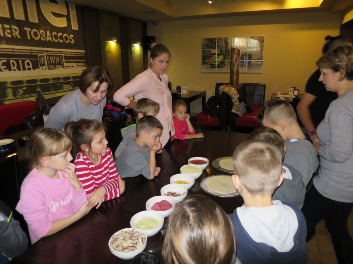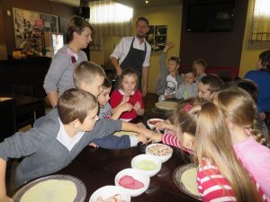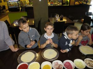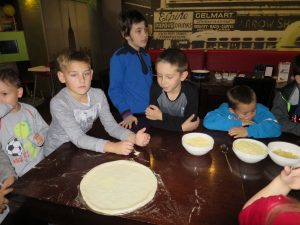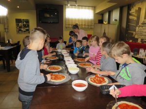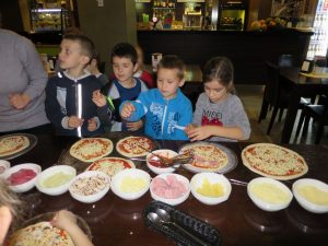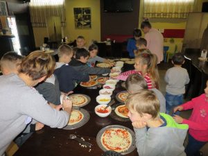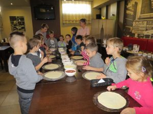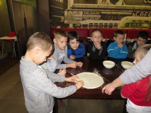 Drugim punktem wycieczki pierwszaków były warsztaty robienia pizzy w Nowej Piwnicy Smaku. Wszyscy z największą starannością przygotowywali włoski przysmak a po upieczeniu, w szybkim tempie znikał on z talerzy.