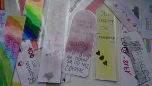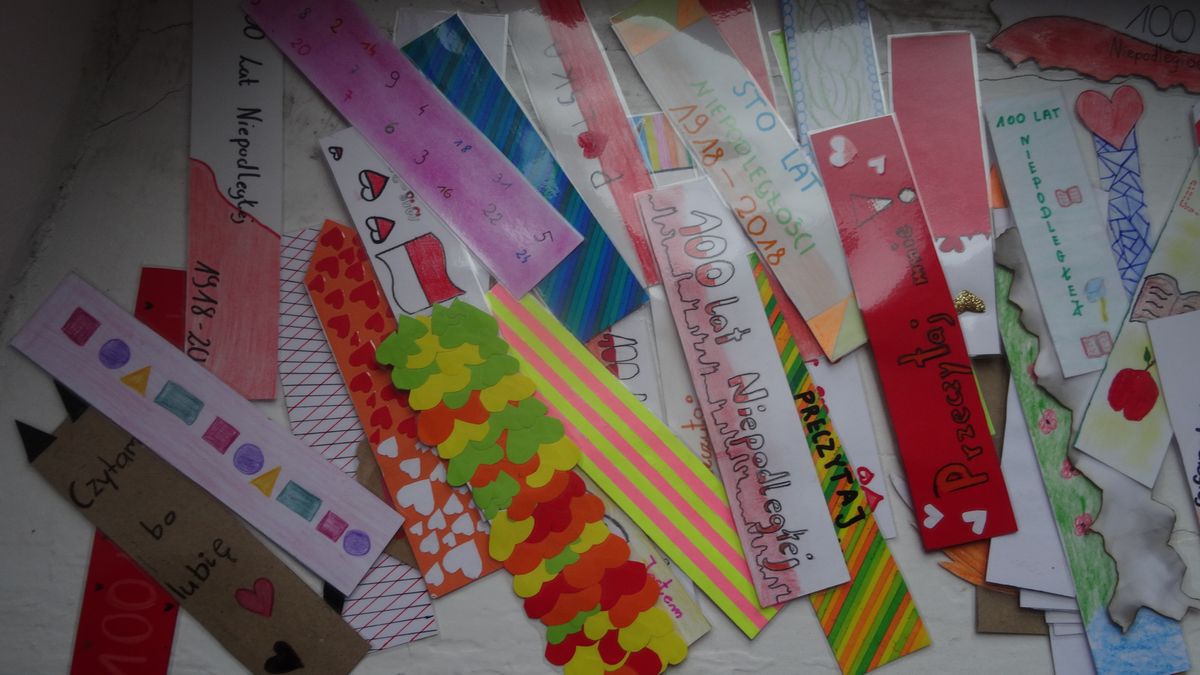 Motywy zakładek dotyczą niepodległości oraz promowania czytelnictwa. Osoba wypożyczająca książkę ze szkolnej biblioteki otrzyma piękną zakładkę. Zachęcamy do czytania.