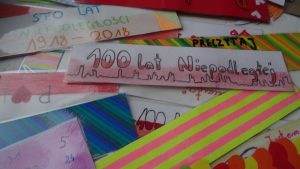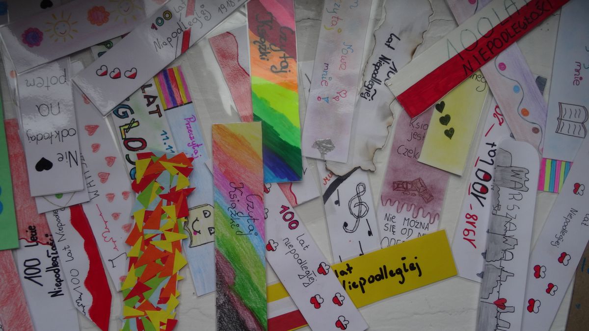 Z okazji 100-lecia odzyskania niepodległości klasa VII przygotowała projekt – „100 zakładek do książek”.