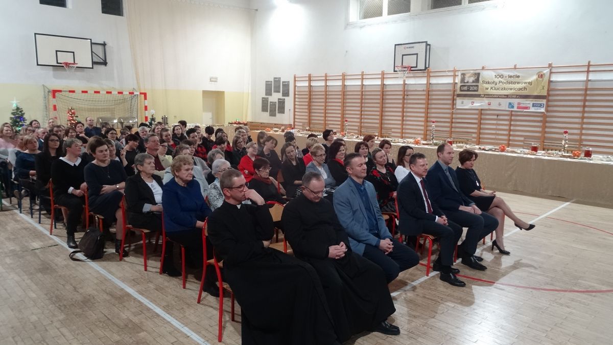We czwartek 10 stycznia 2019 r. odbyło się w naszej szkole spotkanie noworoczne. Swoją obecnością zaszczycili nas panowie Sławomir Plis – burmistrz Opola Lubelskiego oraz Paweł Kalinowski – radny Rady Miejskiej, absolwenci naszej szkoły. Z ogromną radością powitaliśmy nauczycieli emerytów, a także emerytowanych pracowników obsługi. W spotkaniu uczestniczył ks. Józef Włoszek, proboszcz parafii Kluczkowice. Zaproszenie przyjęli również rodzice z Rady Rodziców, którzy licznie zgromadzili się na uroczystości.