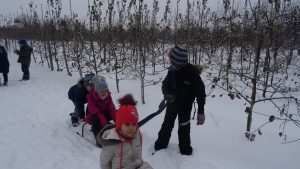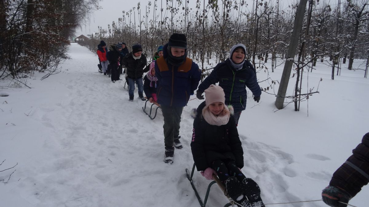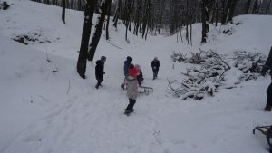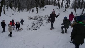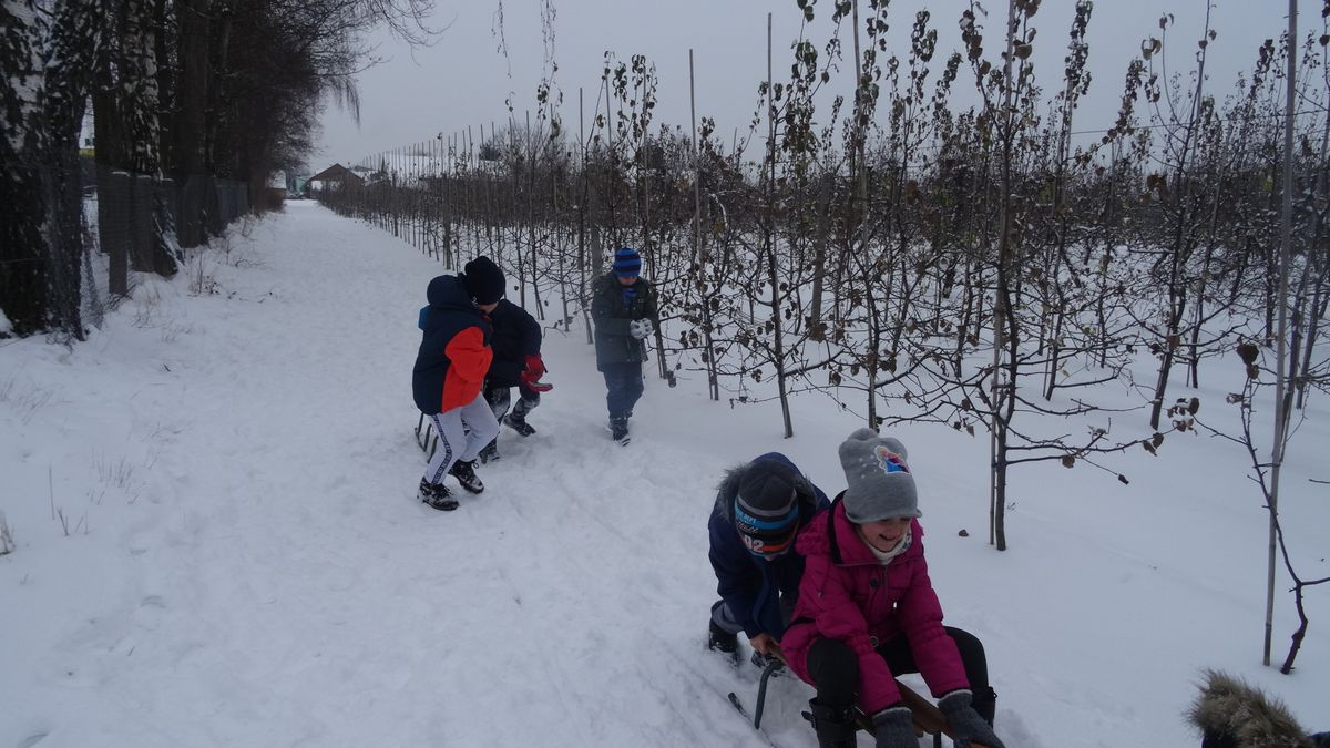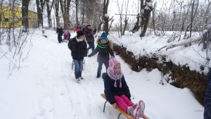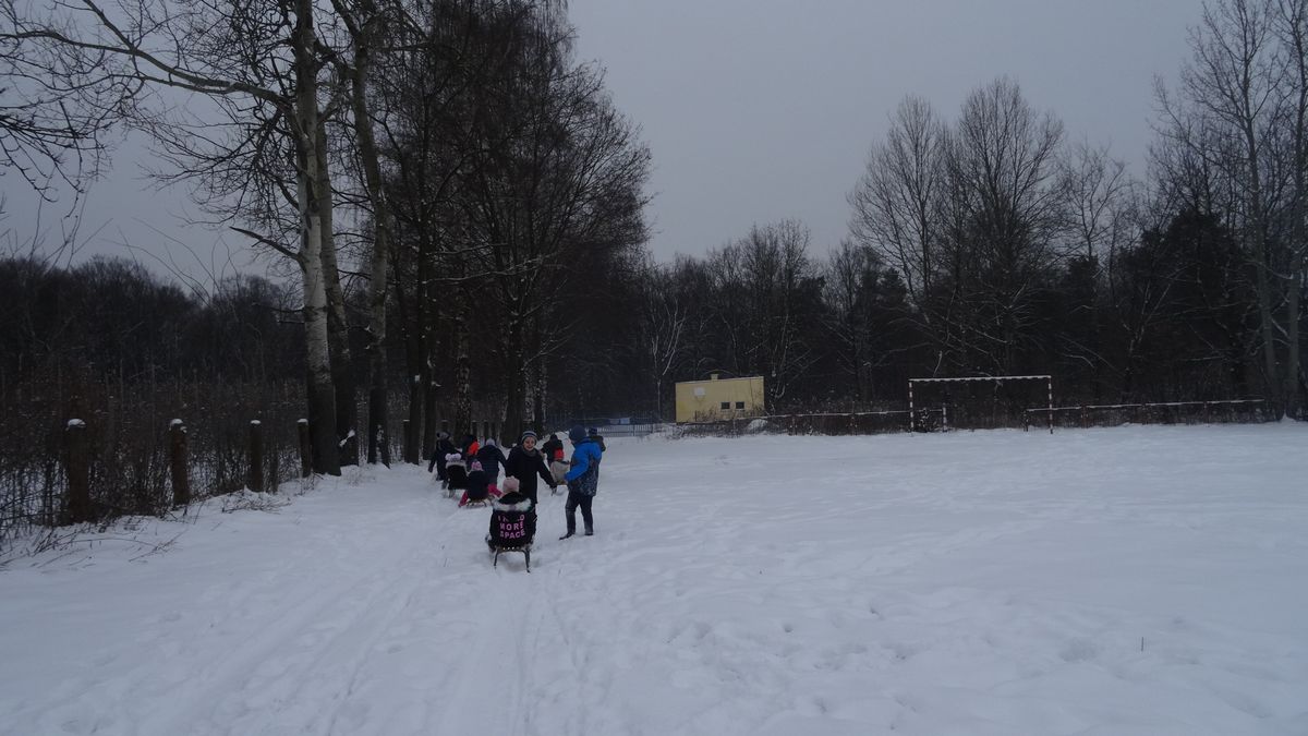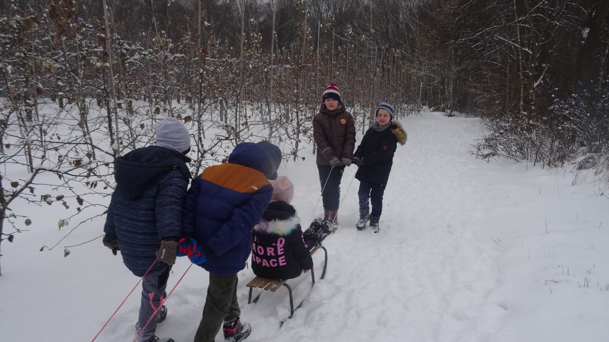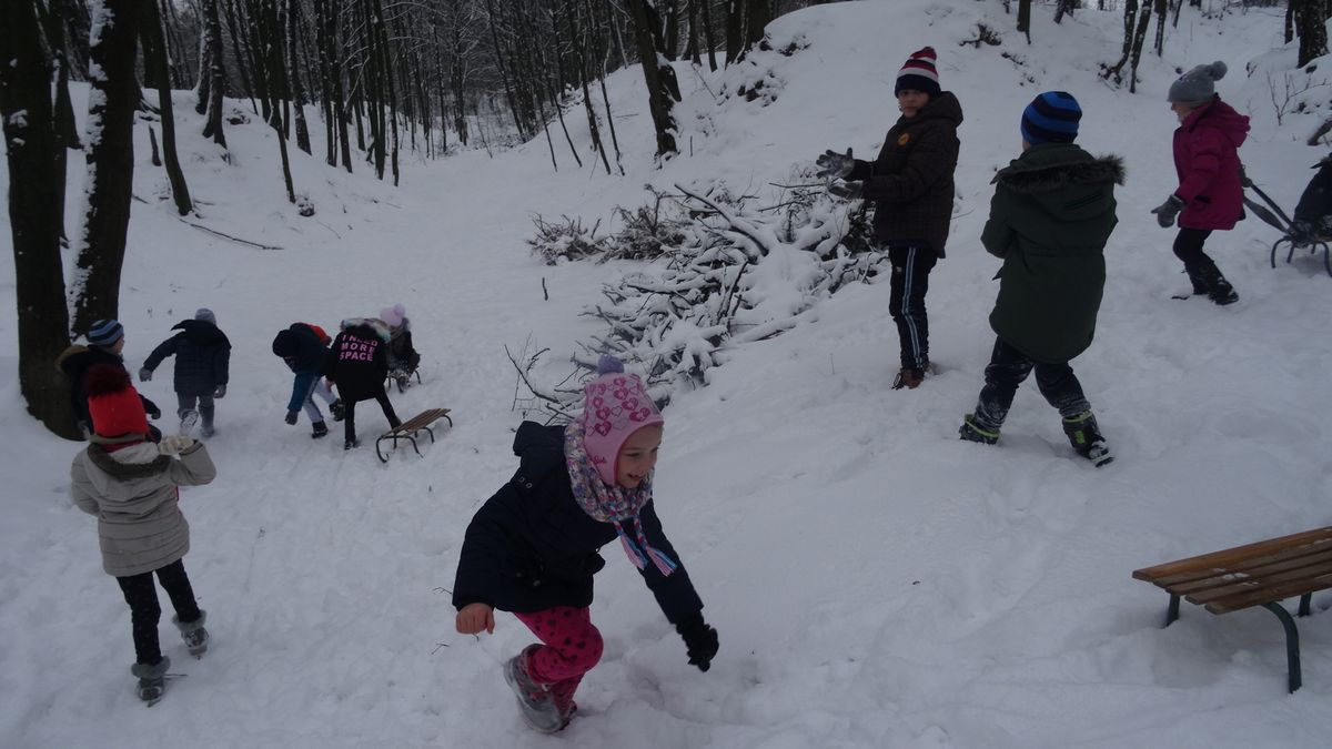 Gdy pogoda sprzyja, często na zajęciach świetlicowych wychodzimy z uczniami na boisko szkolne lub na spacer po lesie. Zimowa aura dopisała, więc staramy się korzystać z uroków pięknej zimy. W czwartkowe popołudnie pierwszoklasiści wybrali się na sanki. Podczas zabawy nikomu nie było zimno. Wielką frajdą okazało się zjeżdżanie z „górki na pazurki”, a także wspinanie się na nią. Zwieńczeniem zabawy była bitwa na śnieżki. Od dawna wiadomo, że wszyscy uwielbiają zimowe szaleństwa na śniegu.