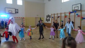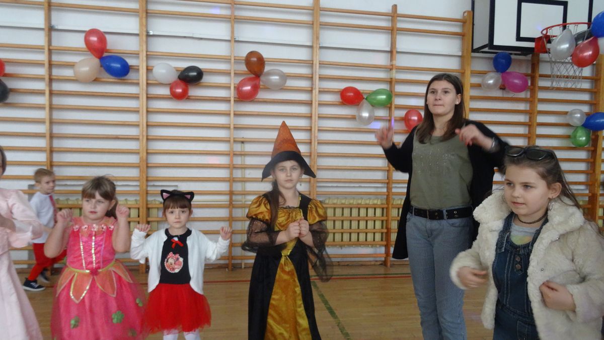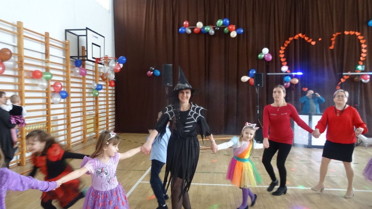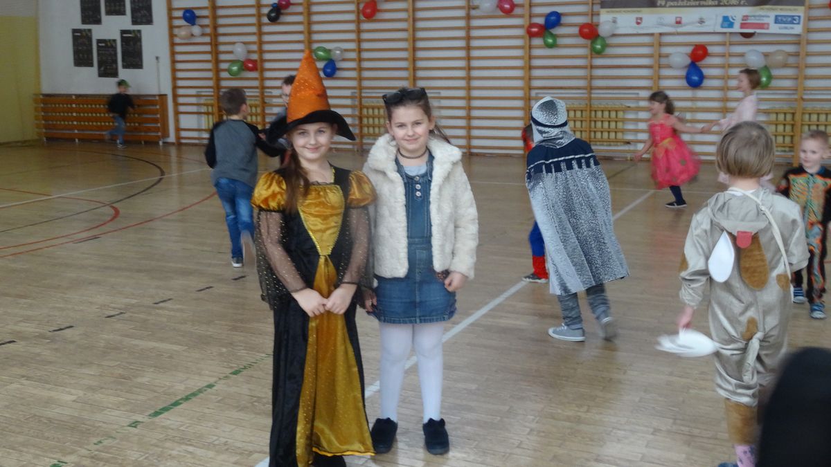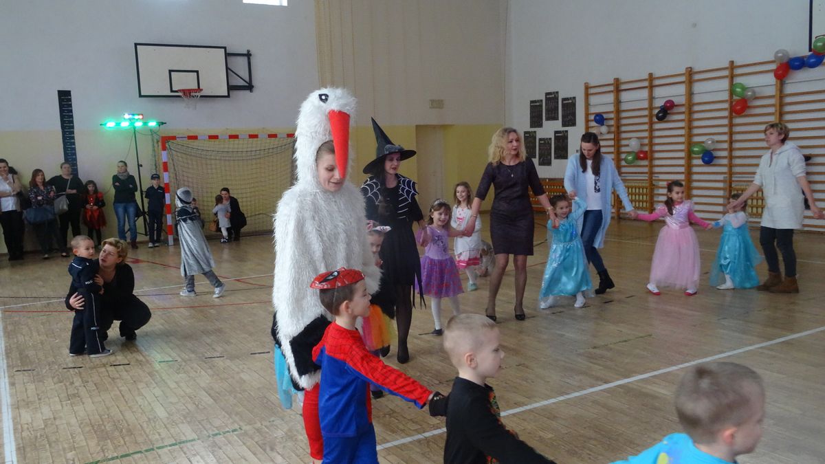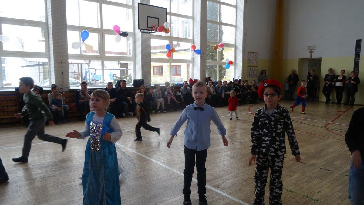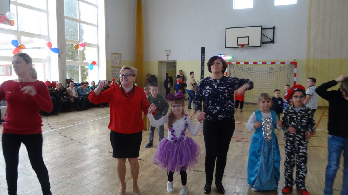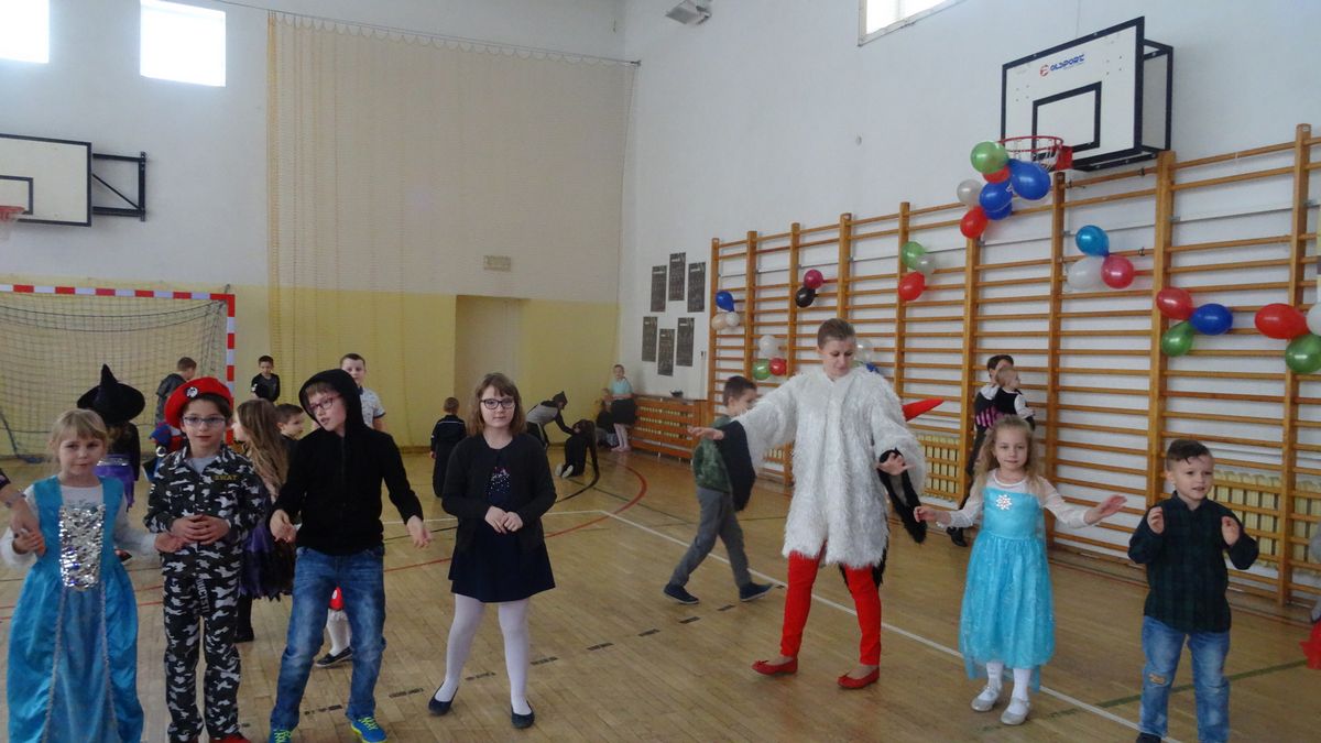 Dnia 26 stycznia 2019 roku w naszej szkole odbyła się zabawa karnawałowa dla dzieci z oddziałów przedszkolnych i klas I-III. Zimowa aura nie zniechęciła do wspólnej zabawy. Wiele dzieci przybyło przebranych za postacie bajkowe, ale największą atrakcją stały się panie nauczycielki, które również poczuły szał karnawału i przebrały się razem z dziećmi.  Czas upływał dzieciom na wesołej zabawie, podczas przyjemnej atmosfery, którą dopełniała taneczna muzyka.