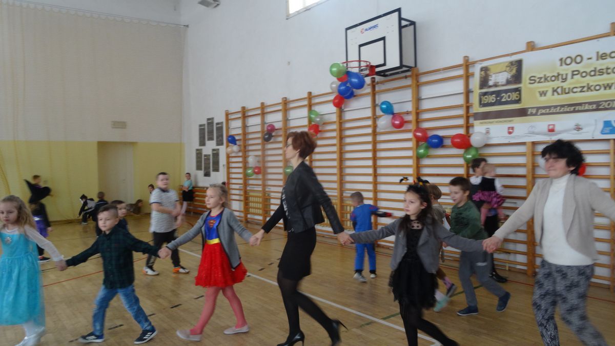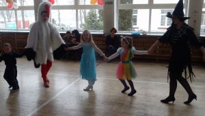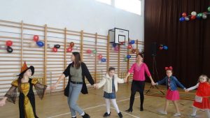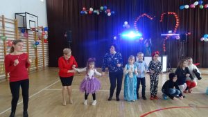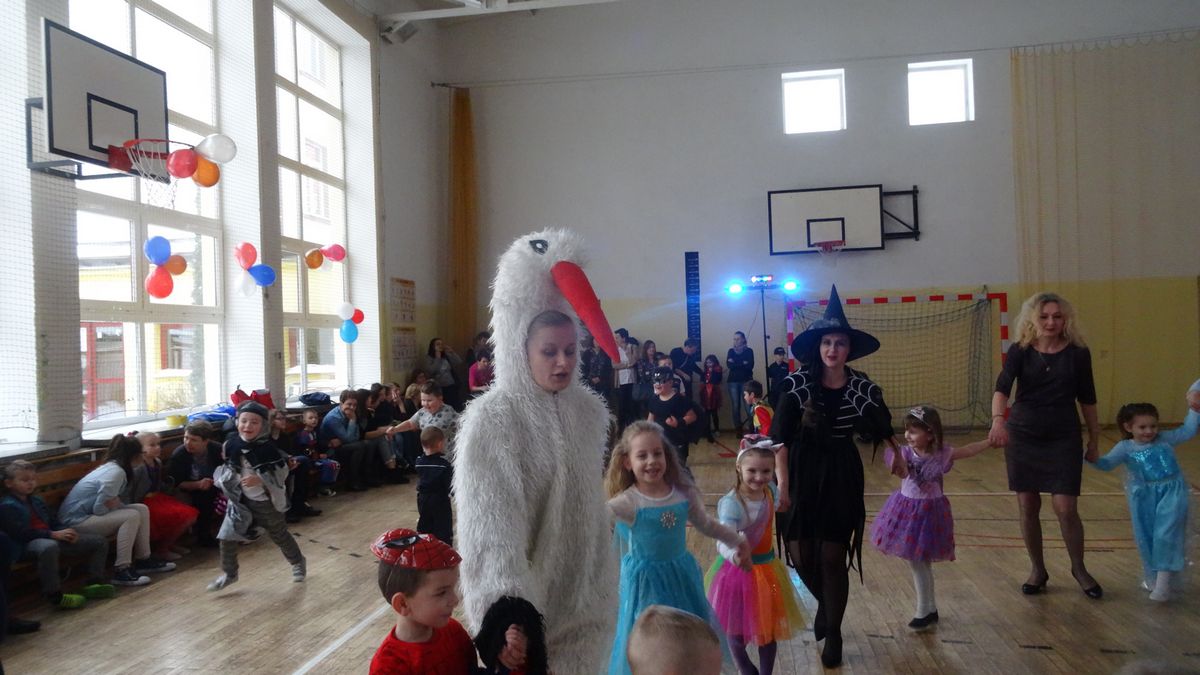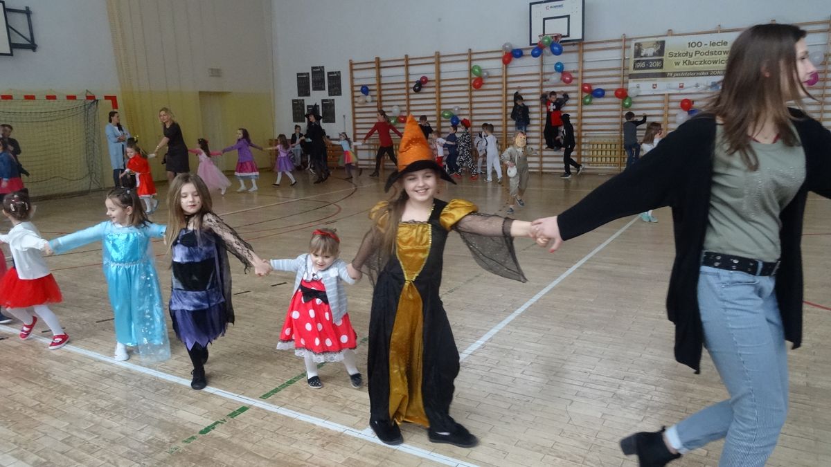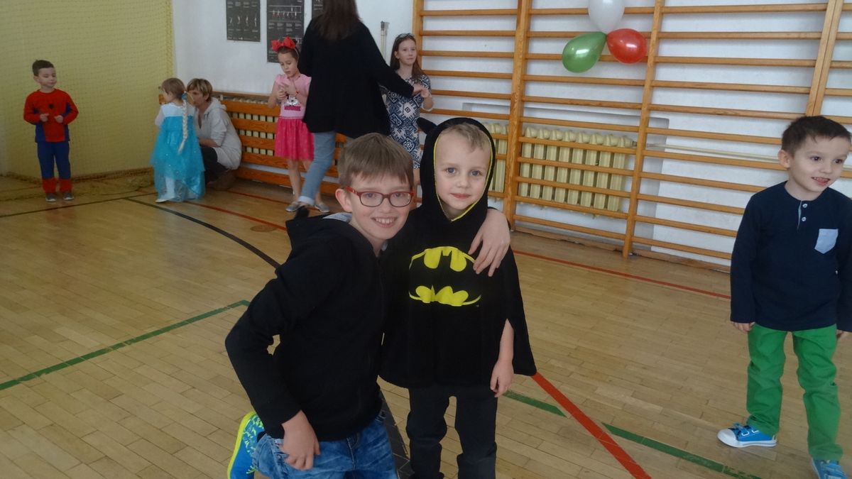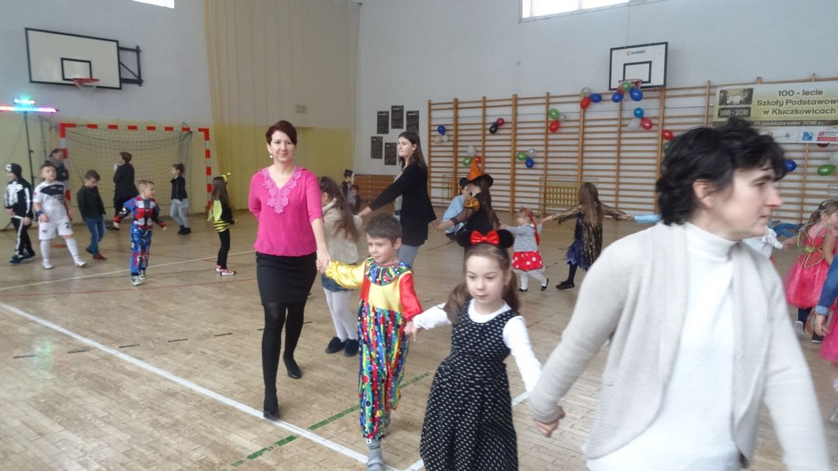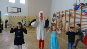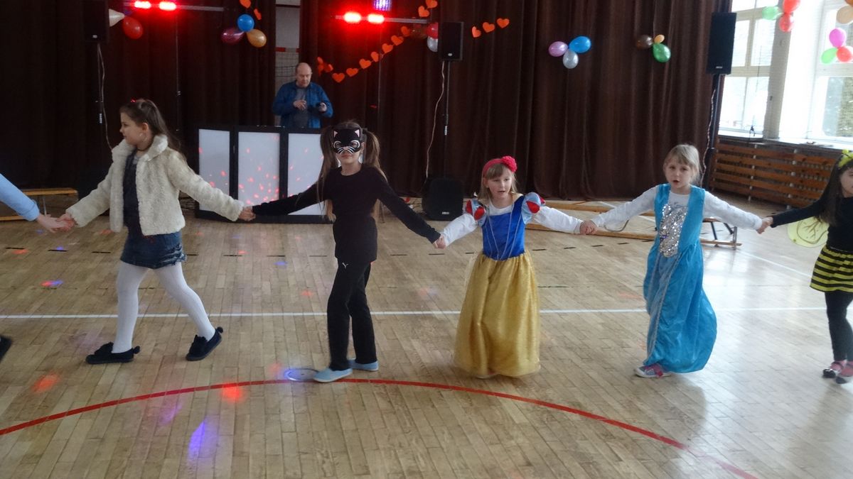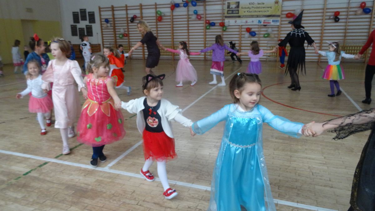 Dnia 26 stycznia 2019 roku w naszej szkole odbyła się zabawa karnawałowa dla dzieci z oddziałów przedszkolnych i klas I-III. Zimowa aura nie zniechęciła do wspólnej zabawy. Wiele dzieci przybyło przebranych za postacie bajkowe, ale największą atrakcją stały się panie nauczycielki, które również poczuły szał karnawału i przebrały się razem z dziećmi.  Czas upływał dzieciom na wesołej zabawie, podczas przyjemnej atmosfery, którą dopełniała taneczna muzyka.
