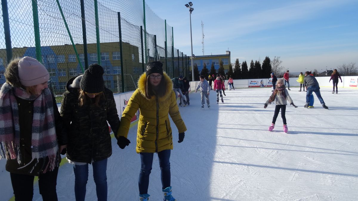 Mimo, że niektórzy mieli po raz pierwszy na nogach łyżwy, wszyscy weszli na taflę i jeździli całkiem nieźle. Nie obyło się bez upadków, czasem przydała się koleżeńska pomoc. Dla wszystkich uczestników wyjazd okazał się prawdziwą frajdą. Dopełnieniem wycieczki była niespodzianka w postaci pizzy. Wszyscy wrócili zadowoleni, że mogli spędzić tak aktywnie czwartkowe popołudnie.
