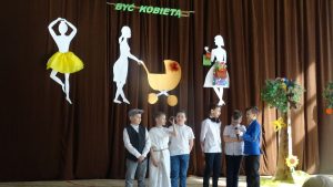 Akademię z okazji Dnia Kobiet przygotowali uczniowie klasy IV pod kierunkiem swojej wychowawczyni. Przedstawiony program artystyczny ukazywał kobietę z perspektywy stworzenia w Raju, z naukowego punktu widzenia oraz całkiem z innej planety. Czwartoklasiści doskonale zobrazowali naturę płci pięknej. Michał Waś z klasy VIII przedstawił „na wesoło” wnikliwą analizę kobiecych zachowań, a Czarek Ligęza z klasy III B zadedykował dziewczynkom i paniom piękną piosenkę.