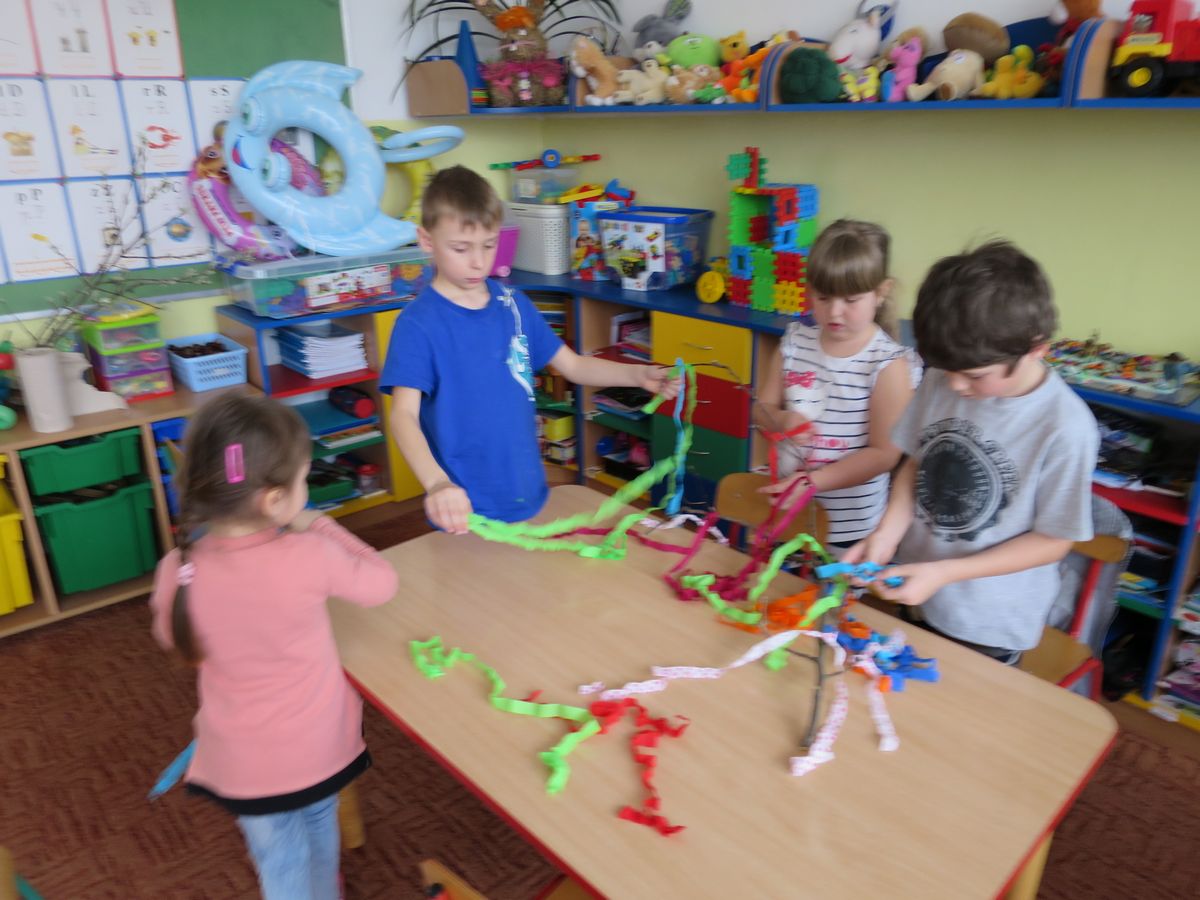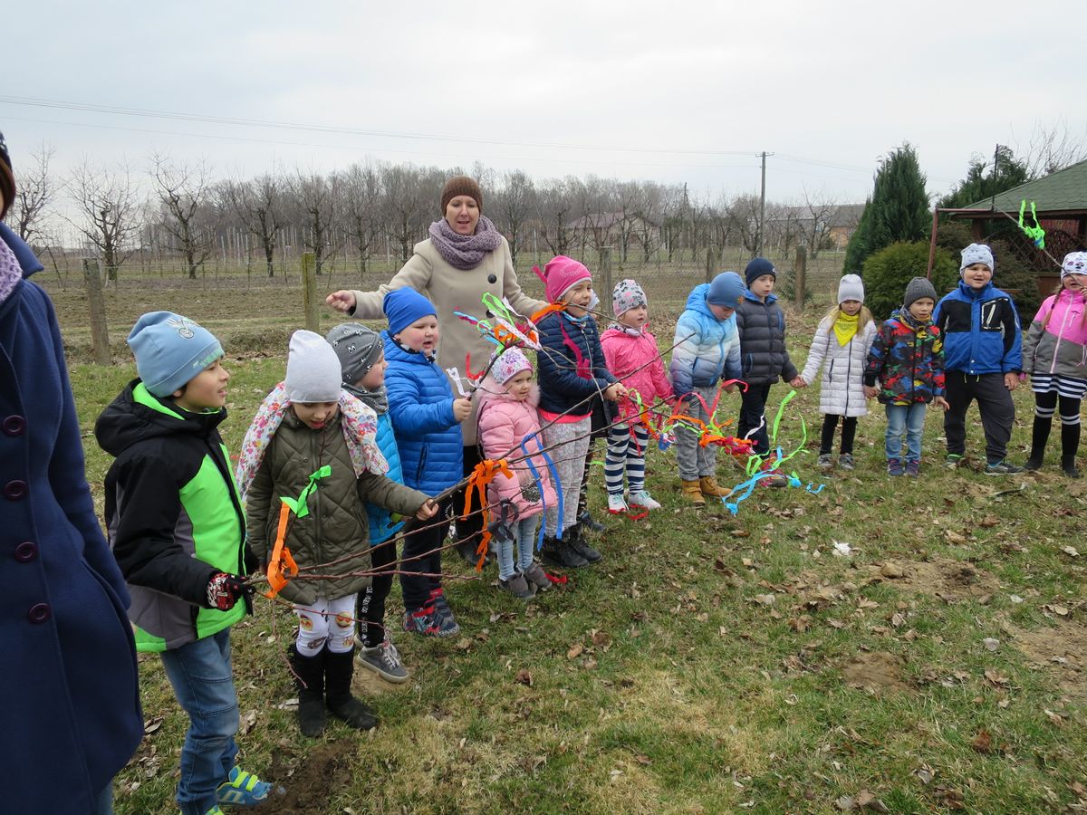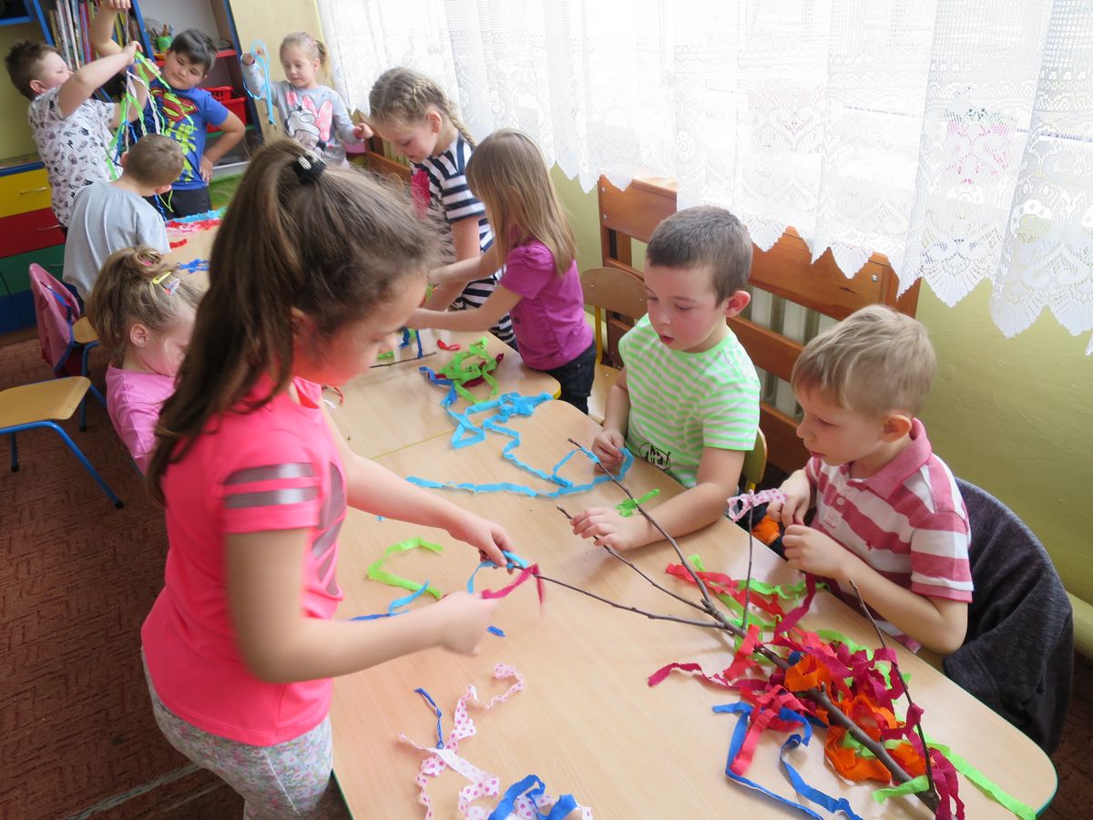 W naszej szkole przygotowania do pożegnania zimy i powitania wiosny zaczęły się już kilka dni wcześniej. Zmieniła się dekoracja przedszkola z zimowej na wiosenną. W salach zazieleniły się kąciki przyrody. Dzieci podlewały wiosenne kwiaty – żonkile, hiacynty i sadziły cebule, z których wkrótce wyrośnie szczypiorek. Nie zabrakło również prac plastycznych, dotyczących pierwszych zwiastunów wiosny. Został także ogłoszony konkurs plastyczny dla wszystkich przedszkolaków pt: „Suknia pani Wiosny”.