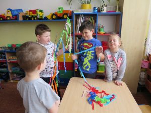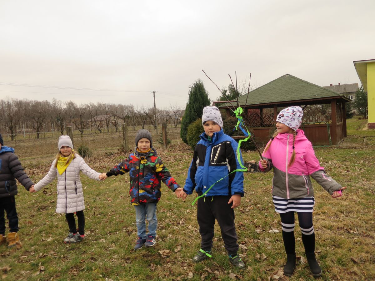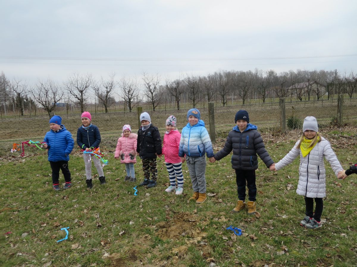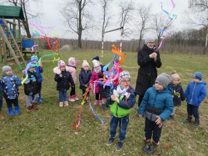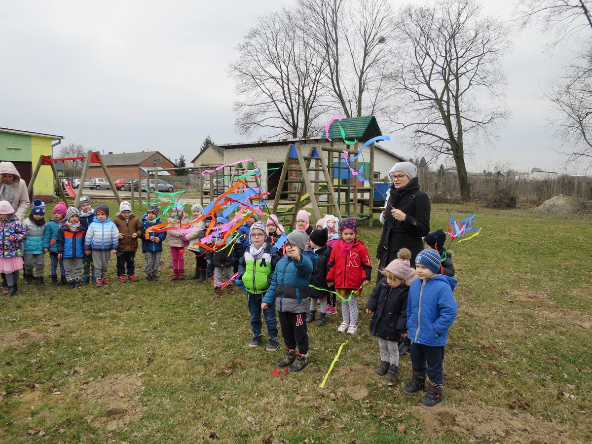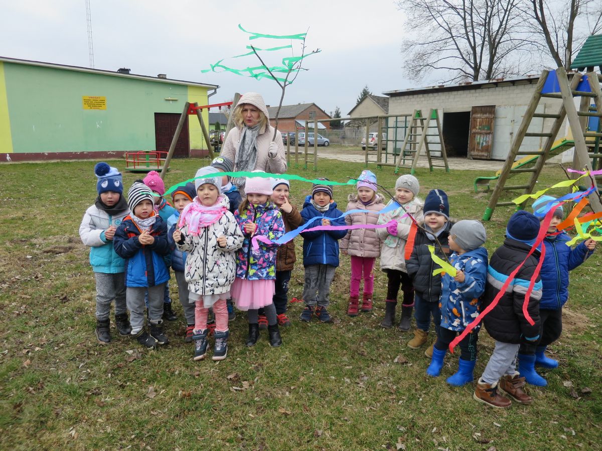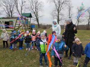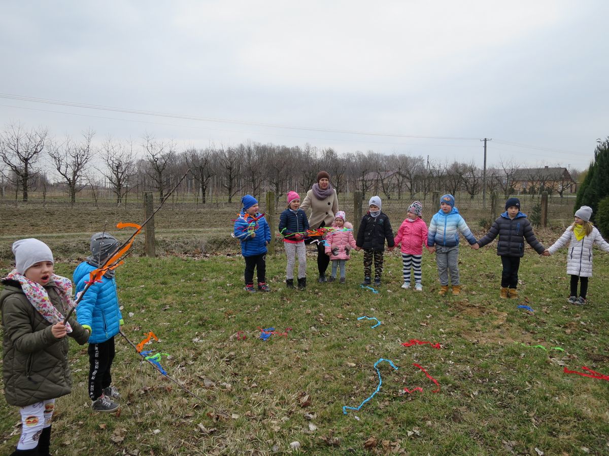 Powitanie wiosny to dla wszystkich wyjątkowe wydarzenie. Ogromne emocje wśród naszych przedszkolaków, wzbudziły już same przygotowania. Kiedy wszystko było już gotowe wokół przedszkola ruszył barwny korowód. Dzieci radośnie śpiewały piosenki wiosenne i skandowały hasła: Marzanno, Marzanno ty zimowa panno, ciebie pożegnamy, wiosnę przywitamy. Wszyscy wrócili do przedszkola z kolorowymi gaikami, w doskonałych humorach ciesząc się, że wiosna wreszcie do nas przybyła!