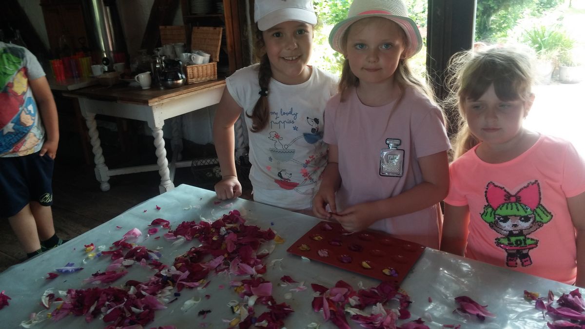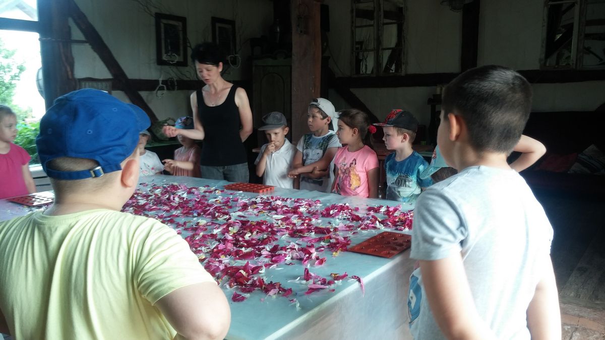 Wycieczka pełna atrakcji rozpoczęła się od wyjazdu autokarem do Sadyby Rozalin – zacisznego gospodarstwa agroturystycznego w Rozalinie niedaleko Opola Lubelskiego. Dzieci miały tam okazję uczestniczyć w warsztatach kulinarnych i rękodzielniczych. Ponieważ pogoda dopisała, można było rozegrać mecz w siatkówkę plażową, spacerować po urokliwym gospodarstwie, pokonać ścieżkę sensoryczną oraz przebyć labirynt. Własnoręcznie przygotowane z ekologicznych składników pizza i czekoladki smakowały najlepiej na świeżym powietrzu, a glicerynowe mydełka z płatkami kwiatów będą przypominać przyjemne chwile podczas mycia rąk.