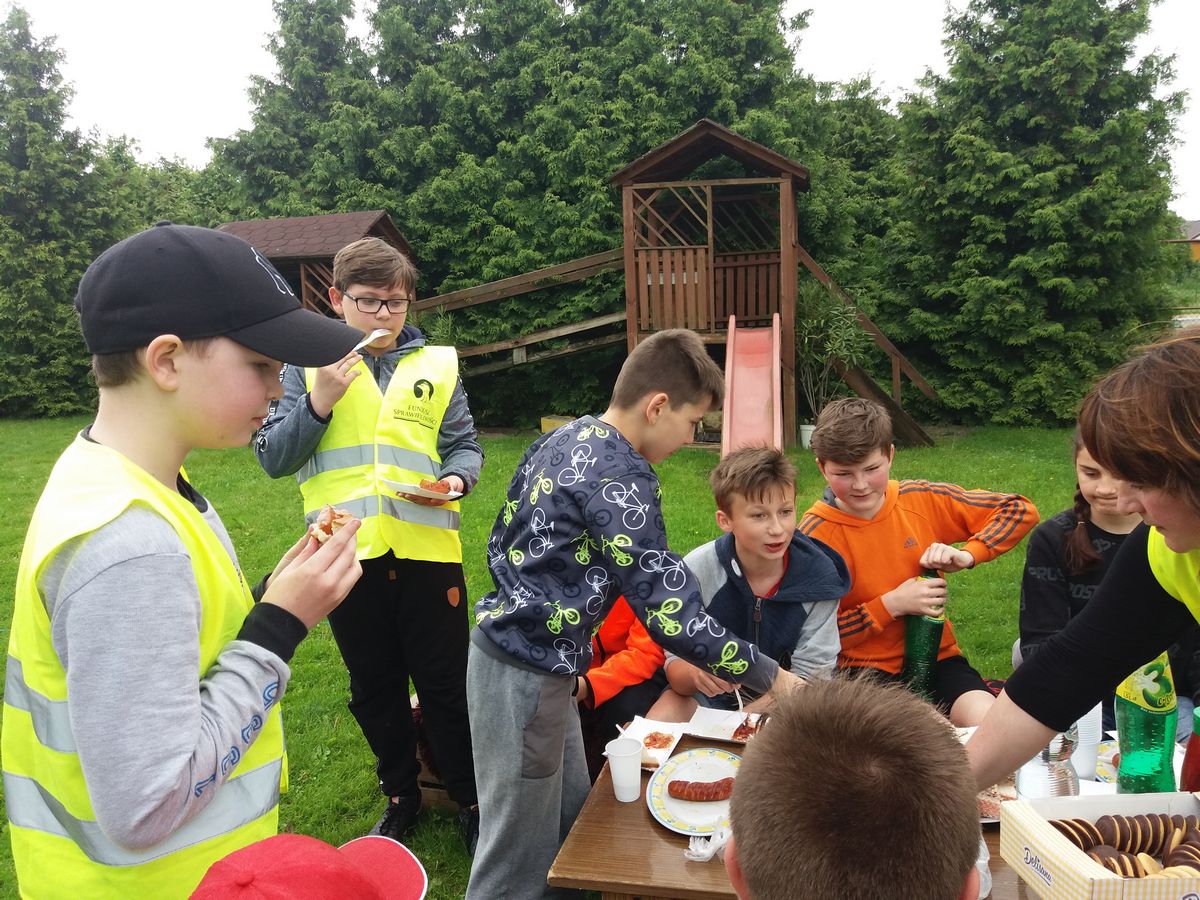 W środę 29 maja pod opieką pani Doroty Janoszczyk i pani Anny Kality, wybraliśmy się na rajd rowerowy. Celem podróży był Piotrawin. Wyjechaliśmy o 8:15 spod szkoły. Pierwszy dłuższy postój mieliśmy w Kamionce. Kiedy ruszyliśmy ponownie zaczął padać deszcz. Chociaż nie był duży, to utrudniał jazdę. Na szczęście po kilku minutach ustał. Po długiej drodze w końcu dotarliśmy do celu. W Piotrawinie zwiedziliśmy kościół gotycki pod wezwaniem św. Tomasza Apostoła i św. Stanisława. Ksiądz Krzysztof Lichota opowiedział nam historię parafii i pokazał eksponaty, które są w tutejszym muzeum. Byliśmy pod wrażeniem. Niedaleko kościoła znajduje się nieczynny kamieniołom. Udaliśmy się tam do punktu widokowego na Małopolski Przełom Wisły. Tak zakończyła się nasza wyprawa po Piotrawinie, ale to nie był koniec atrakcji. W drodze powrotnej zajechaliśmy do domu naszej wychowawczyni, pani Dorotki i tam mieliśmy grilla. Czekały nas również zabawy i gry, więc nie było mowy o nudzie. Gdy każdy wypoczął, pojechaliśmy do szkoły. Rajd zakończył się sukcesem: każdy cały i zdrowy wrócił do domu. Taki wypad na rowery jest fajną odmianą od lekcji.