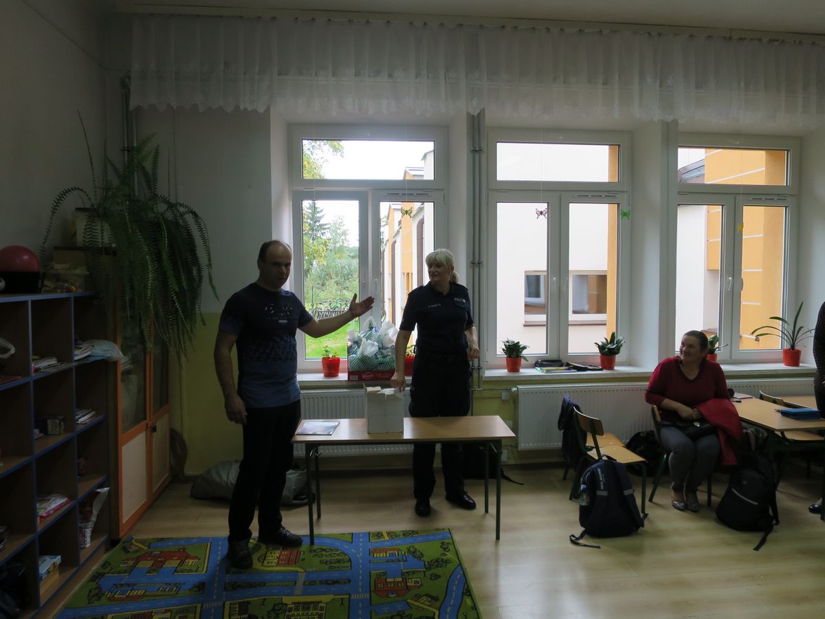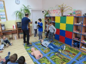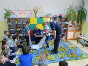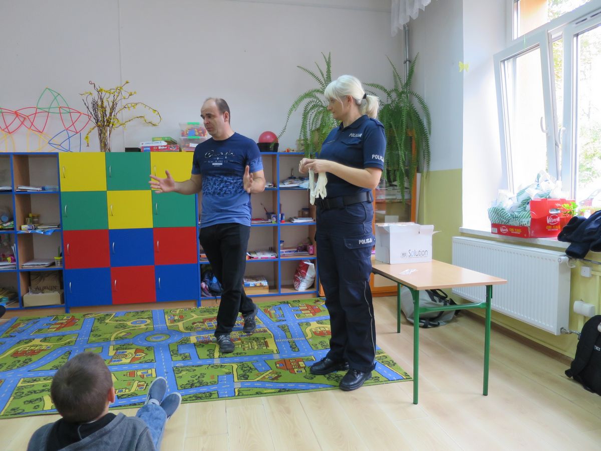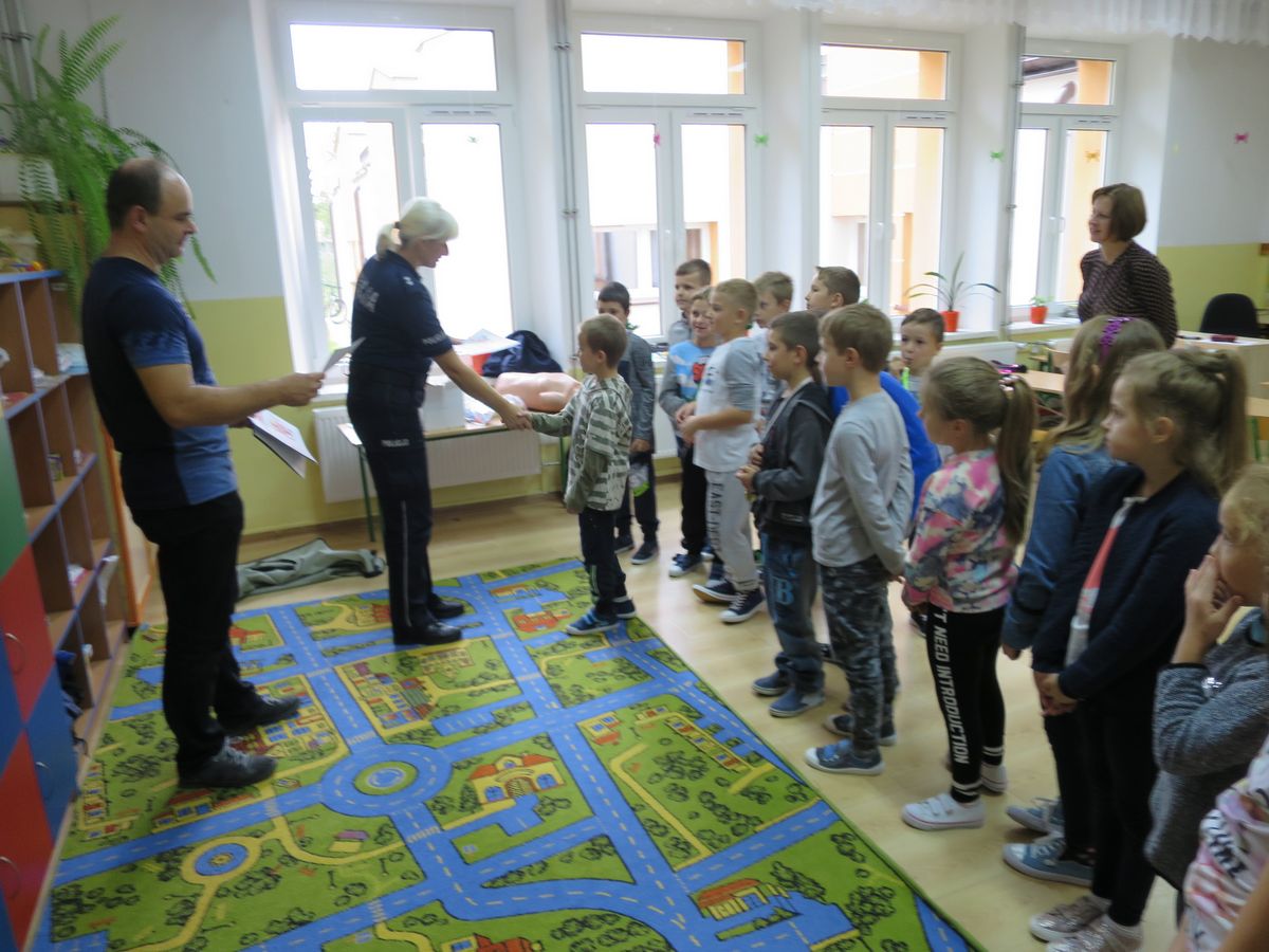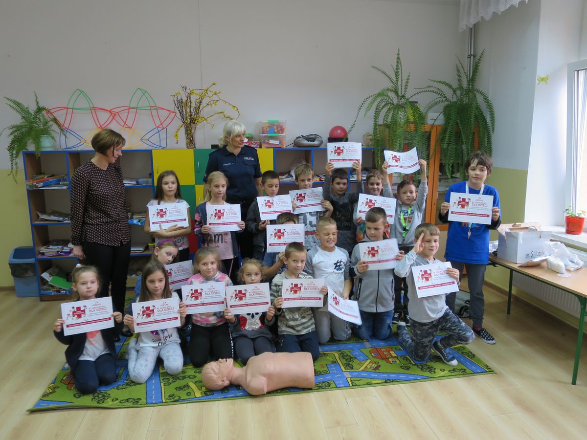 W poniedziałek 30 września nasza klasa II a obchodziła Dzień Chłopaka. Z tej okazji do grupy zawitali niecodzienni goście, byli nimi policjanci z Komendy Policji w Opolu Lubelskim. Goście zorganizowali naszym uczniom szkolenie z zakresu udzielania pierwszej pomocy przedmedycznej. Policjanci przypomnieli również jak należy zachować się, gdy ktoś w pobliżu słabo się poczuje, zemdleje lub złamie rękę. Na koniec spotkania uczniowie otrzymali dyplomy „Małego Ratownika”, na którym najważniejsze było hasło: „Nie bądźmy bierni – ratujmy ludzkie życie”.