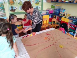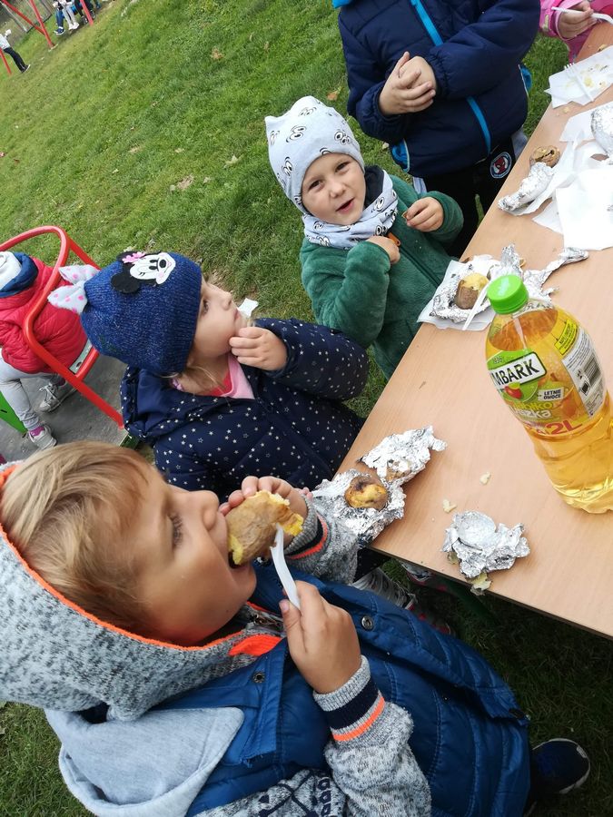 Pierwsze jej oznaki, spadające liście, a także kasztany i żołędzie, które zawitały do przedszkolnych sal są potwierdzeniem nadejścia Pani Jesieni. Klasa pierwsza oraz dzieci z grup przedszkolnych namalowały jesień zgodnie z własnymi wyobrażeniami, dzieci powitały ją piosenką lub wierszem. Dzień zwieńczyły gry i zabawy na boisku szkolnym oraz pieczone w ognisku ziemniaczki. Było smacznie!
