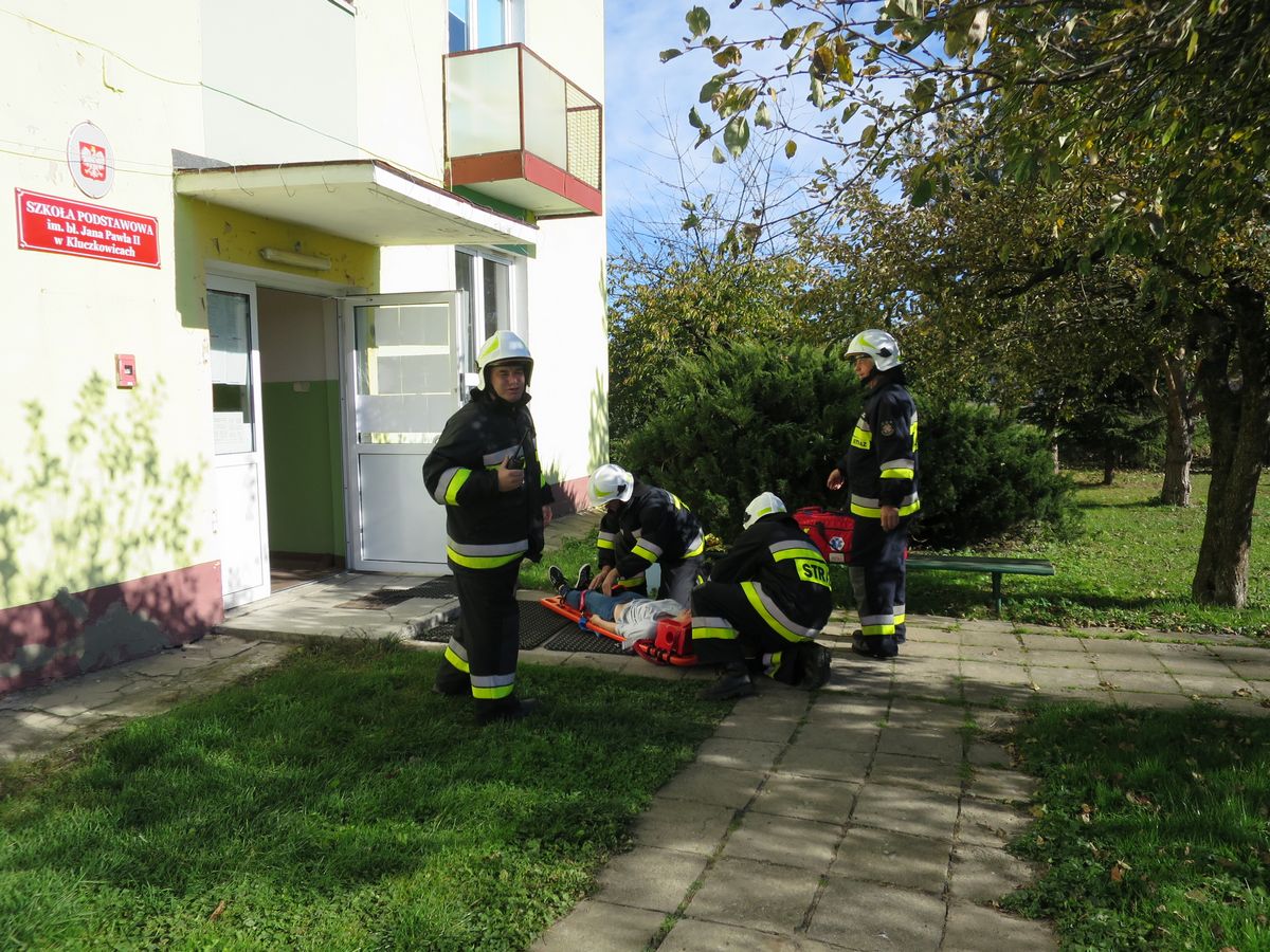 17 października 2019 r. odbyła się próbna ewakuacja przeciwpożarowa. Do naszej szkoły przyjechała jednostka Ochotniczej Straży Pożarnej w Kluczkowicach, aby obserwować jak uczestnicy ewakuacji na sygnał syreny alarmowej opuszczają budynek wyznaczonymi wyjściami ewakuacyjnymi poza teren szkoły. Cała akcja przebiegała sprawnie i bez zakłóceń.