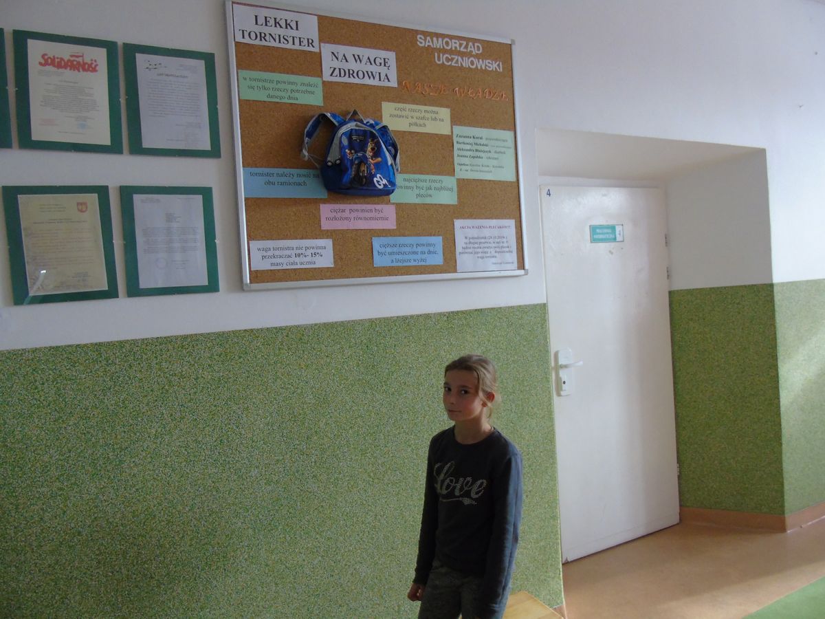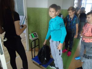W akcji wzięły udział klasy II- III oraz IV- VIII. Sprawdzono ciężar 86 plecaków. Większość tornistrów nie przekraczało zalecanej przez specjalistów normy wagi, jednak były i takie, które miały znacznie większy ciężar niż powinny. W tych plecakach często znajdowały się książki i zeszyty, które danego dnia nie były potrzebne oraz pamiętniki i duże napoje.