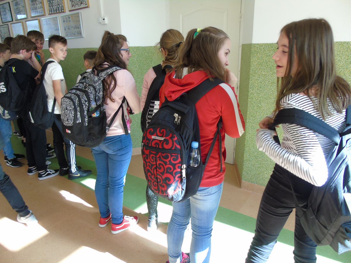 Organizatorzy udzielali uczniom wskazówek jak odpowiednio spakować plecak oraz jak go prawidłowo nosić. Przypomnieli również, że podręczniki i przybory szkolne można zostawiać w szafkach.