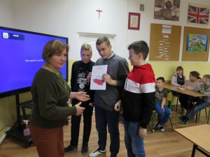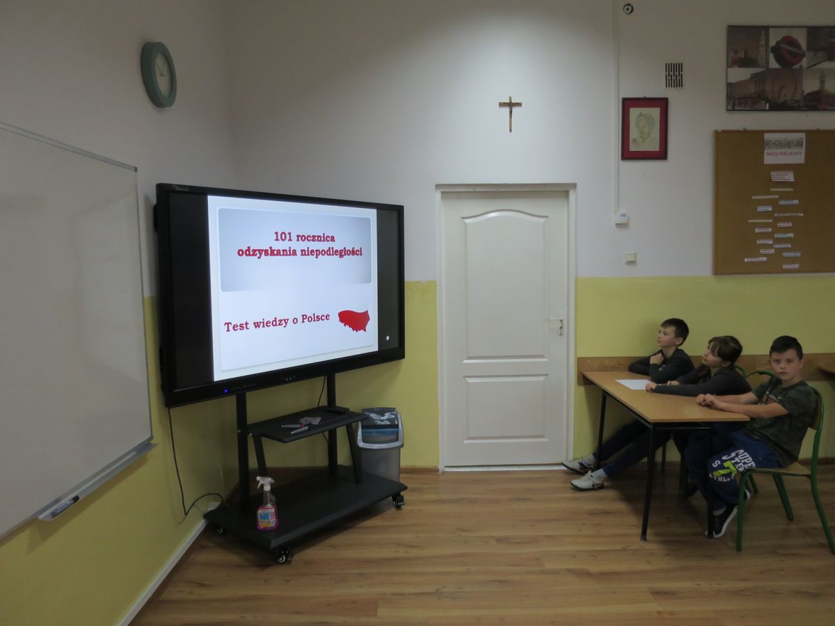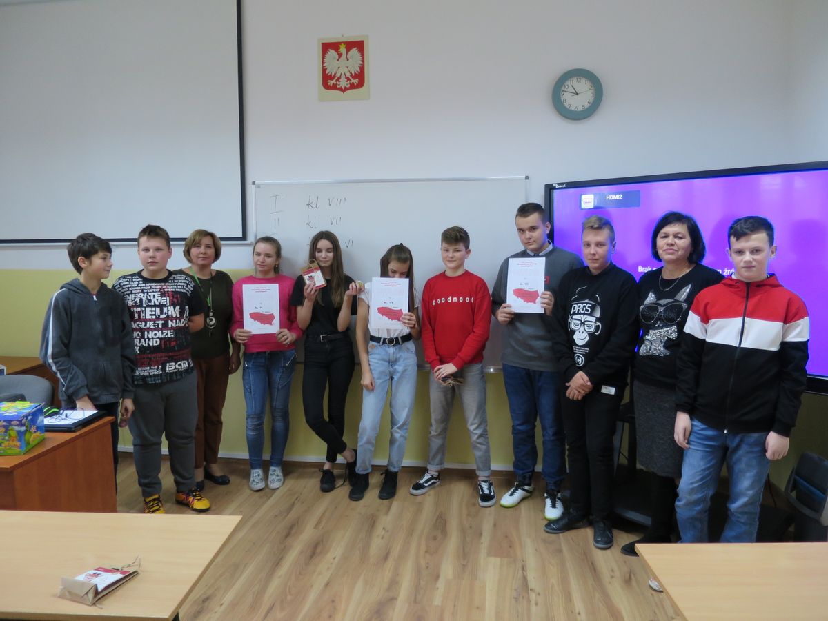 Obchody 101 rocznicy odzyskania przez Polskę niepodległości w naszej szkole jeszcze się nie zakończyły. W piątek odbył się II Świetlicowy Test Wiedzy o  Polsce. Wzięli w nim udział uczniowie od klasy IV do VIII. Musieli się zmierzyć z pytaniami ogólnie dotyczącymi całego naszego pięknego kraju. Były to pytania nie tylko z historii ale również z geografii oraz wiedzy ogólnej współczesnej. Większość  drużyn odpowiadała „śpiewająco” na kolejne pytania. Zwyciężyli uczniowie klasy VIII. Wszystkim serdecznie  dziękujemy za udział, a zwycięzcom gratulujemy! Z pewnością test powtórzymy za rok.
