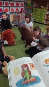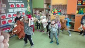 Miś Uszatek, Koralgol, Puchatek każdy z nas ma swojego ulubieńca. Dzieci z oddziałów 0a 0b i 0c zaprosili do przedszkola swoich pluszowych przyjaciół. Pluszaki towarzyszyły im podczas układania misiowych puzzli, malowania i kolorowania, były partnerami podczas pląsów i zabaw ruchowych, wspólnie odgadywali zagadki oraz słuchali opowiadań o przygodach innych misiów.