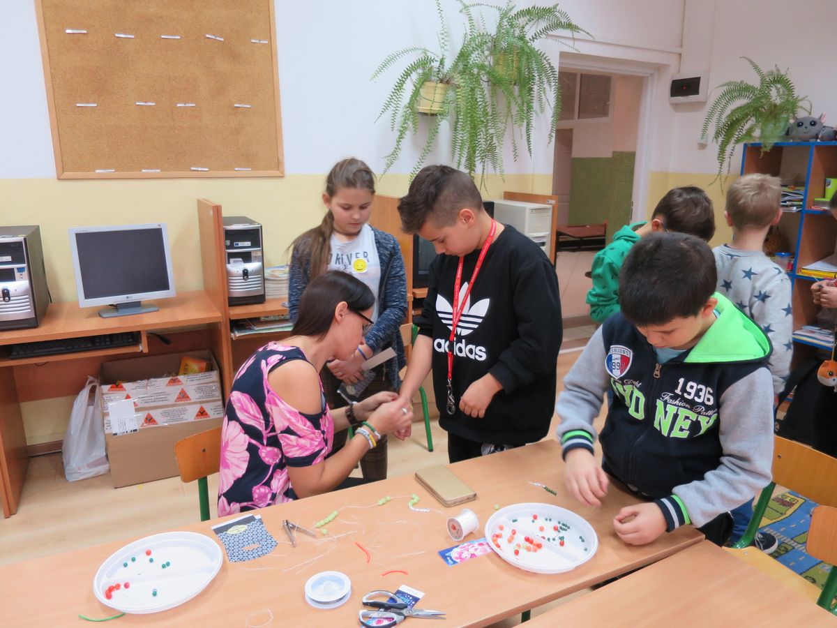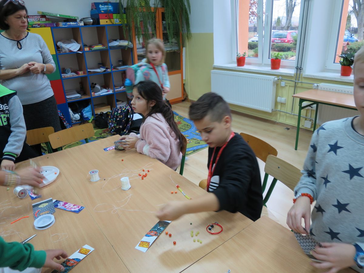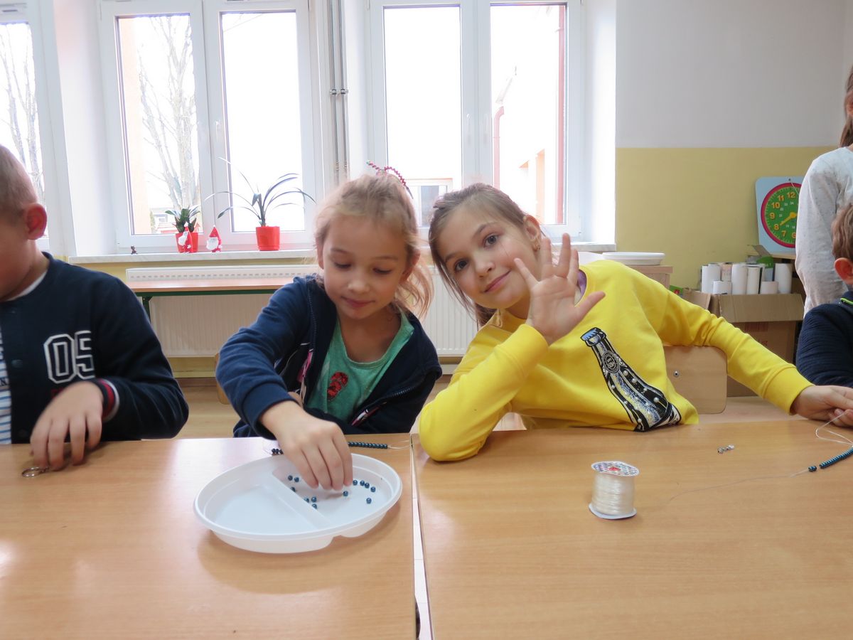 3 i 5 grudnia 2019 r. w naszej szkole odbyły się świetlicowe Mikołajki. W tym roku nasze Mikołajki miały charakter warsztatów. Zaprosiliśmy do naszej szkoły panią Monikę, właścicielkę „Zakątka inspiracji” pod okiem, której nasi najmłodsi uczniowie wykonali własnoręcznie prezenty dla siebie i swoich bliskich. Była to wspaniałą lekcja robienia biżuterii, świetna zabawa oraz nauka koncentracji i ćwiczenia umiejętności manualnych poprzez zabawę.
