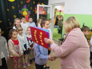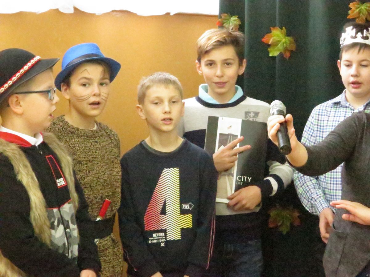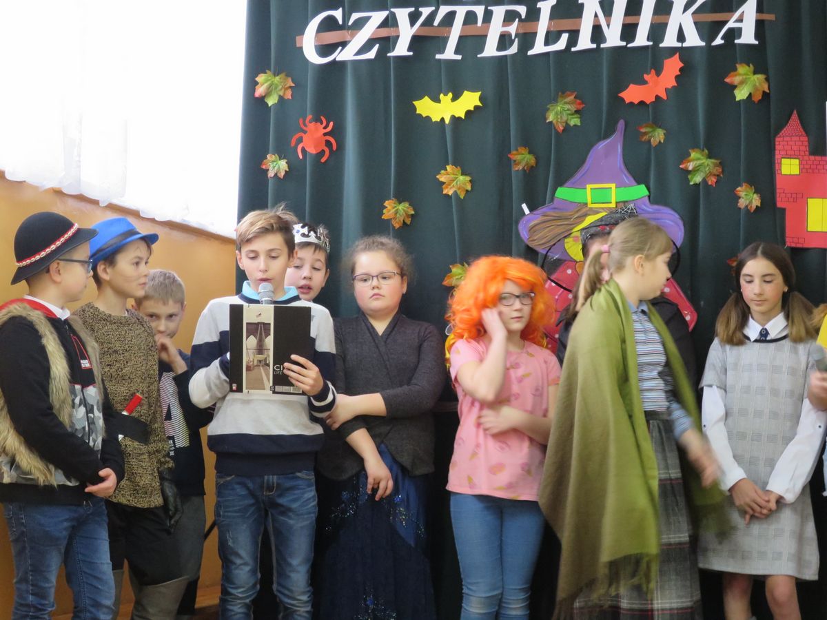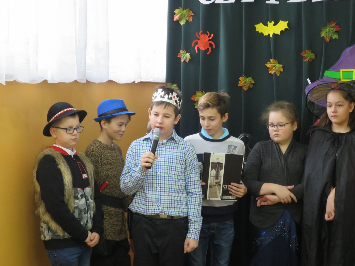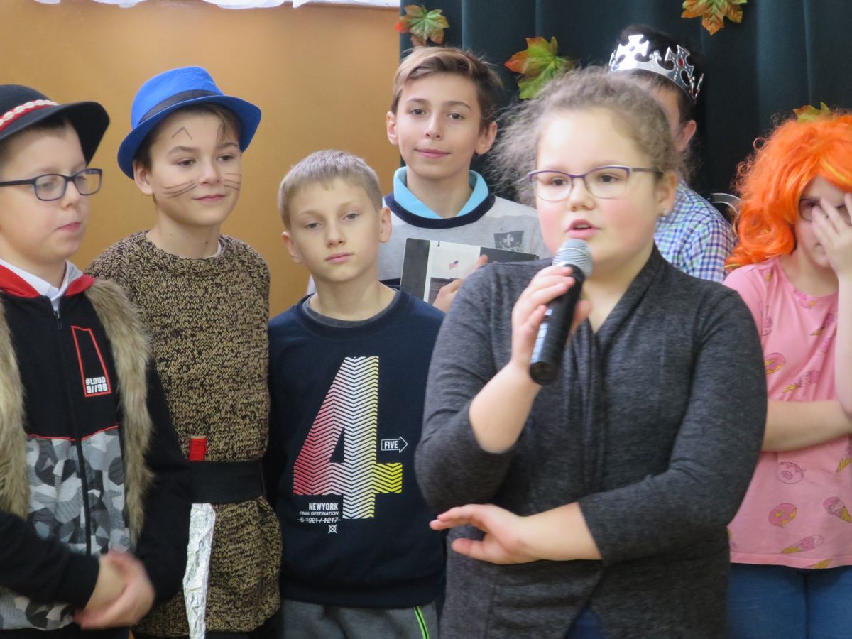 Na początku grudnia w naszej szkole odbyło się uroczyste pasowanie uczniów klasy I na czytelników biblioteki szkolnej. Uczniowie klasy V, pod kierunkiem pani bibliotekarki Anny Starek, przygotowali dla swoich młodszych kolegów inscenizację pod tytułem  „Królowa książka”. Królową biblioteki  odwiedziły rożne postacie z ulubionych książek. Na scenie można było zobaczyć Kota w butach, Szewczyka Dratwekę, Pipi Pończoszankę,  dobrą wróżkę oraz Anię z Zielonego Wzgórza. Bohaterowie zastanawiali się czy „pierwszaki” wiedzą jak obchodzić się z książkami i jak zachowywać się w bibliotece. Zrobili maluchom ciekawy test, który okazał się dla nich bardzo łatwy. Wszyscy oczywiście zdali  śpiewająco i zostali uroczyście pasowani na czytelników biblioteki szkolnej. Cała klasa otrzymała pamiątkowe zakładki do książek oraz okolicznościowy dyplom.