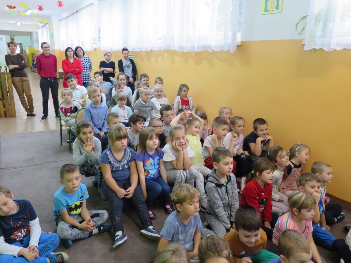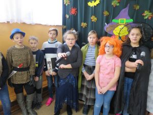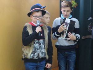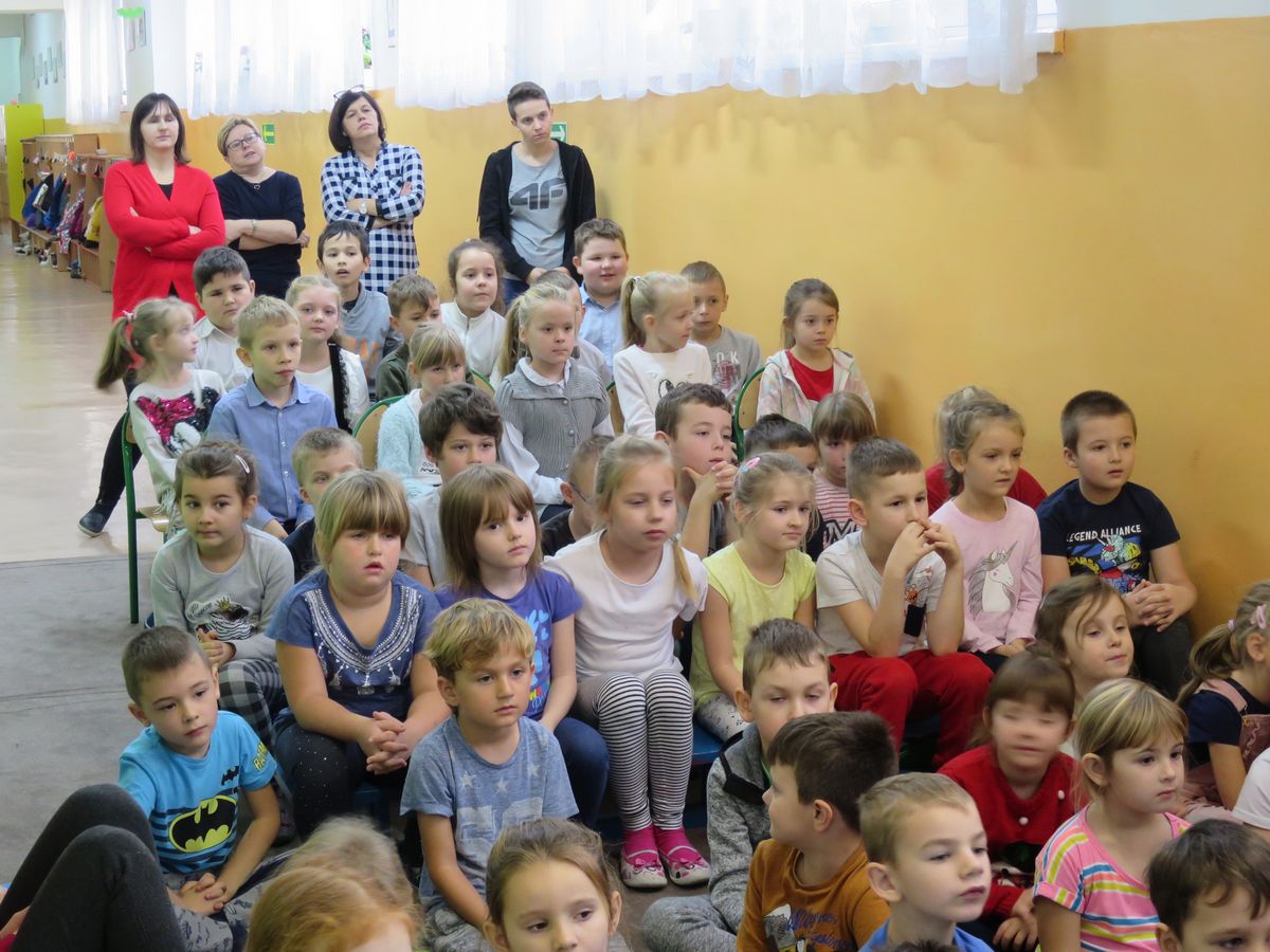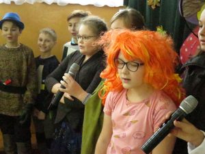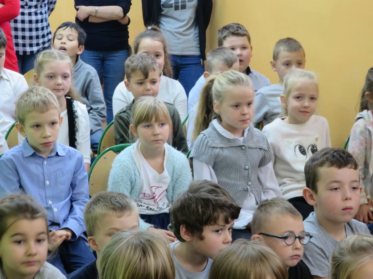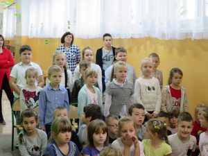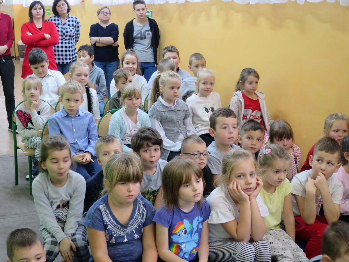 Na początku grudnia w naszej szkole odbyło się uroczyste pasowanie uczniów klasy I na czytelników biblioteki szkolnej. Uczniowie klasy V, pod kierunkiem pani bibliotekarki Anny Starek, przygotowali dla swoich młodszych kolegów inscenizację pod tytułem  „Królowa książka”. Królową biblioteki  odwiedziły rożne postacie z ulubionych książek. Na scenie można było zobaczyć Kota w butach, Szewczyka Dratwekę, Pipi Pończoszankę,  dobrą wróżkę oraz Anię z Zielonego Wzgórza. Bohaterowie zastanawiali się czy „pierwszaki” wiedzą jak obchodzić się z książkami i jak zachowywać się w bibliotece. Zrobili maluchom ciekawy test, który okazał się dla nich bardzo łatwy. Wszyscy oczywiście zdali  śpiewająco i zostali uroczyście pasowani na czytelników biblioteki szkolnej. Cała klasa otrzymała pamiątkowe zakładki do książek oraz okolicznościowy dyplom.