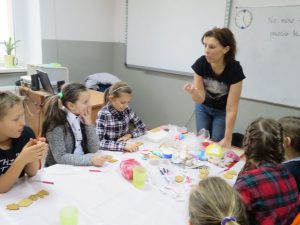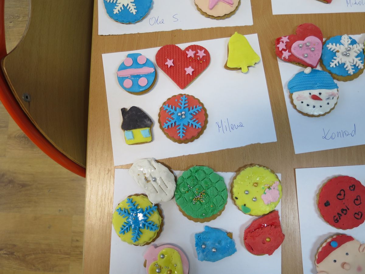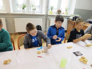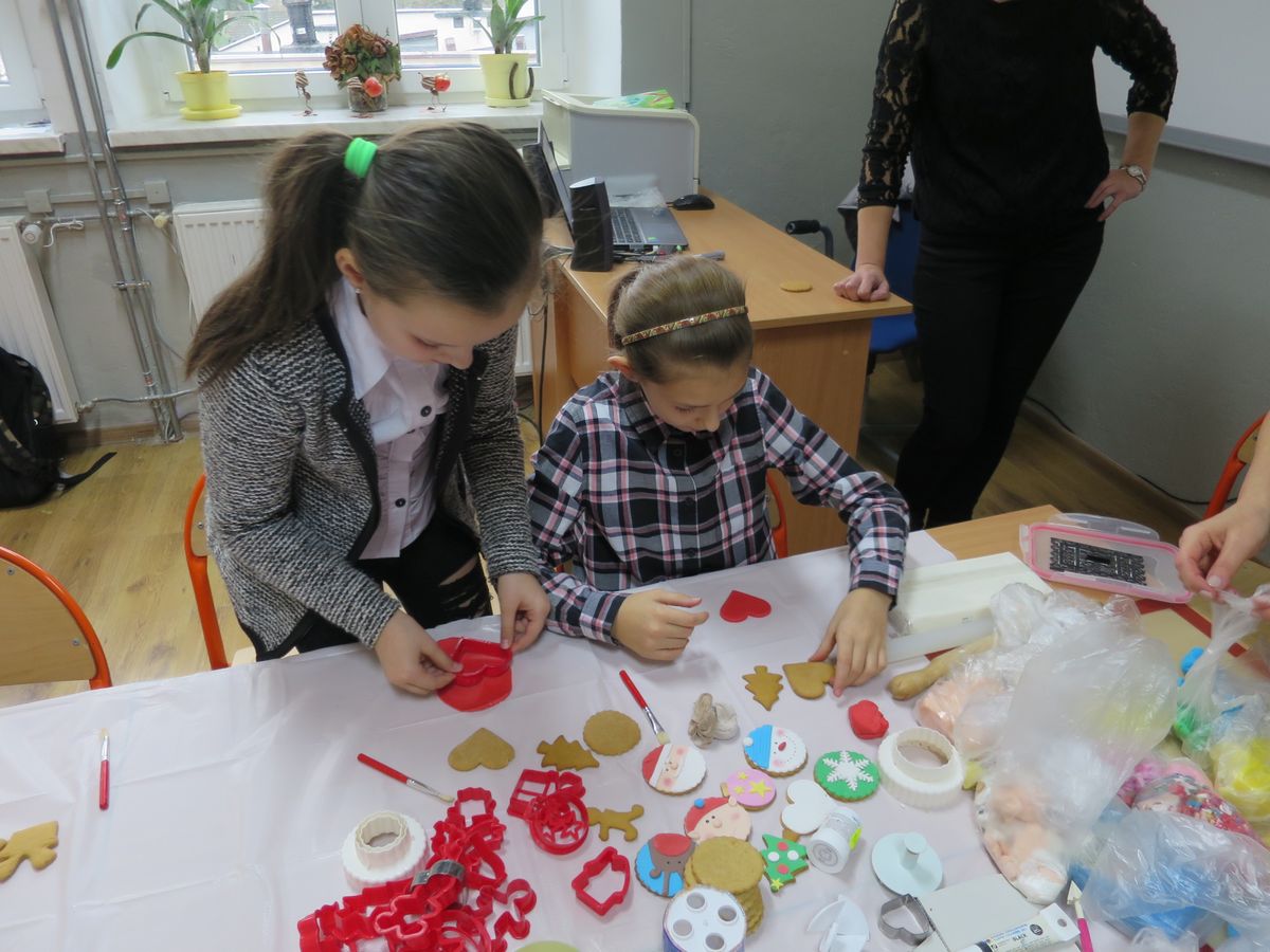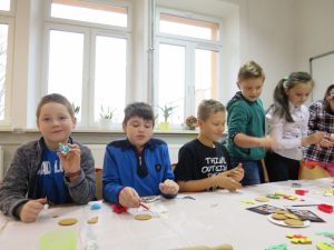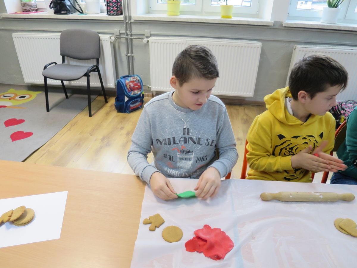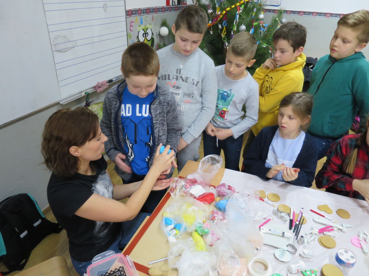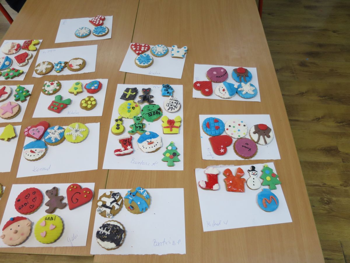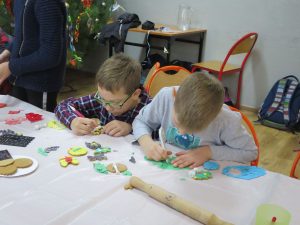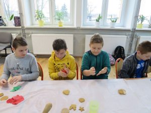 9 grudnia 2019r. w klasie III bi odbyły się warsztaty cukiernicze przeprowadzone przez panią Annę Budkowską. Uczniowie mieli okazję zapoznać się z zawodem cukiernika oraz samodzielnie udekorować pierniczki, które pani Ania upiekła na tę okazję. Dzieci uczyły się, jak należy wyrabiać masę lukrową, jak używać wałka do ciasta, foremek i innych narzędzi cukierniczych. Uczniowie z wielkim zaangażowaniem i z wielkim zapałem zabrali się za zdobienie pierniczków. Udekorowane pierniczki wyglądały bardzo apetycznie.
