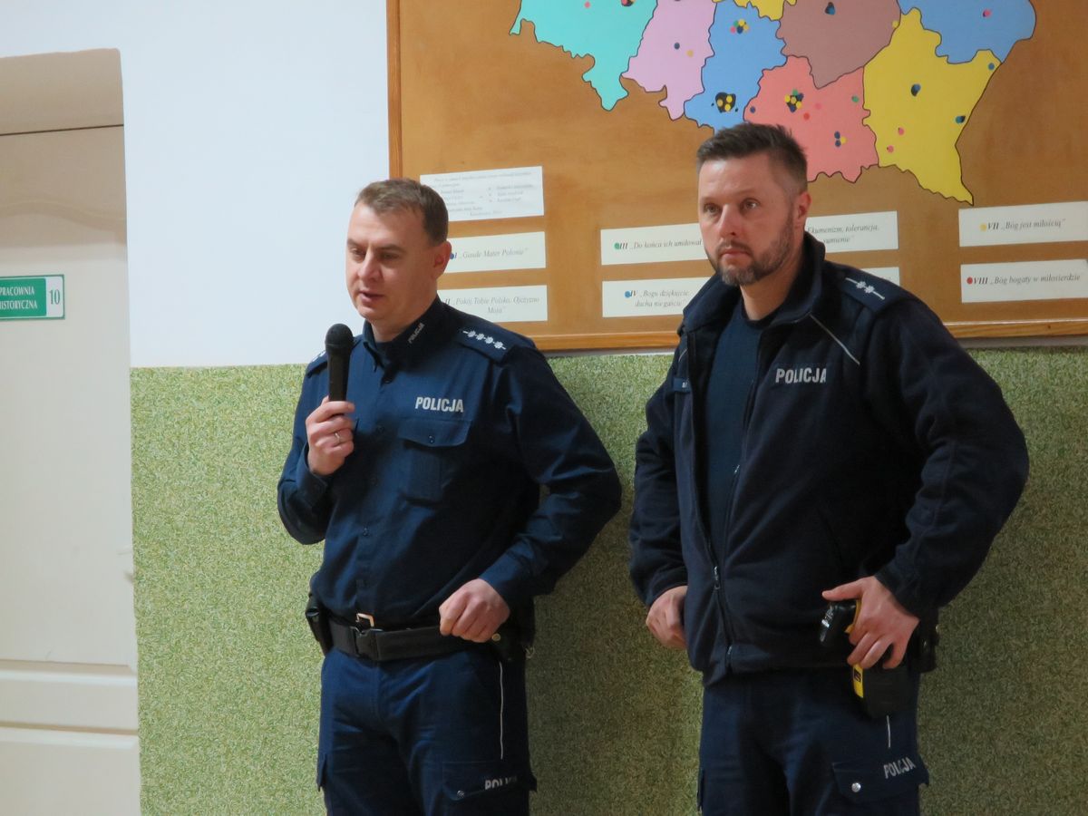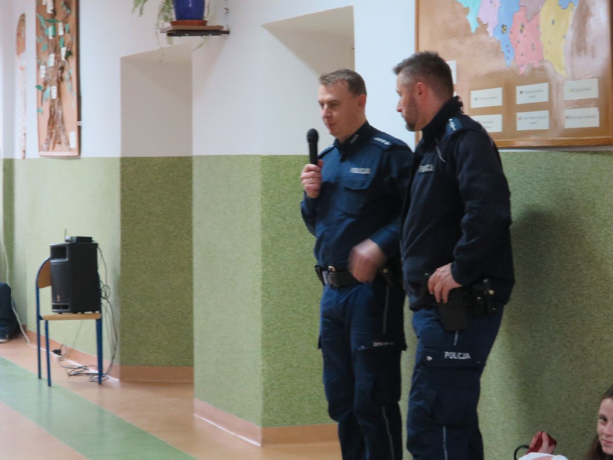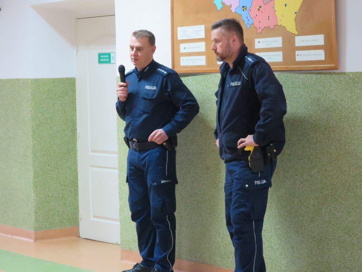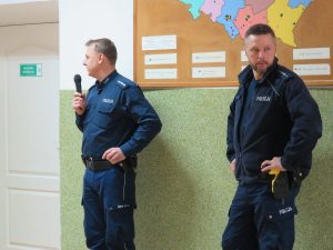 W ostatnim tygodniu przed feriami naszą szkołę odwiedzili policjanci i przypomnieli uczniom o bezpieczeństwie  podczas ferii zimowych.