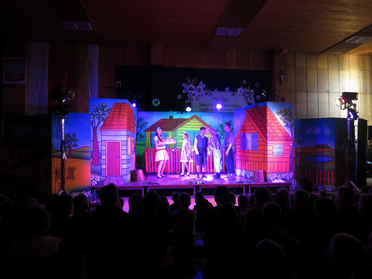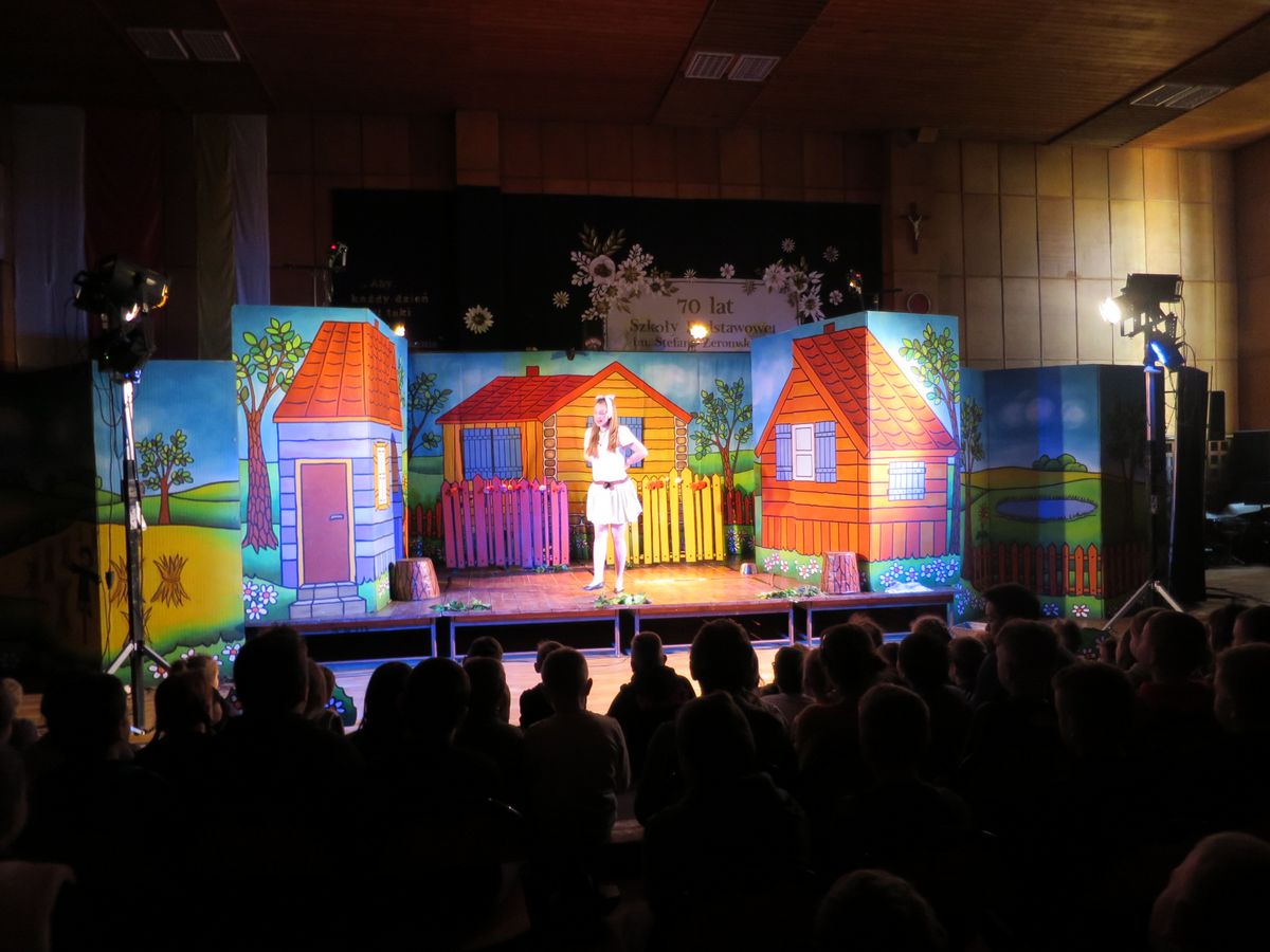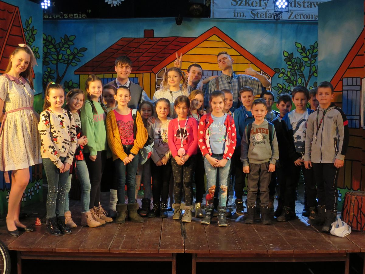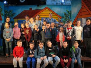 Taniec i radość płynące ze sceny pozwoliły przenieść się w kultowy już, niezapomniany świat dziecięcej wyobraźni. Ciekawe kostiumy, rekwizyty, oprawa muzyczna były dużym atutem spektaklu i cieszyły się zainteresowaniem szkolnej publiczności. Dzieci aktywnie włączały się do zabawy i nagradzały aktorów gromkimi oklaskami. Zwieńczeniem wspaniałej zabawy było wspólne zdjęcie z aktorami.