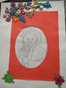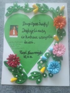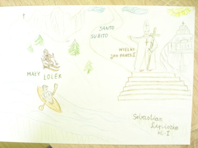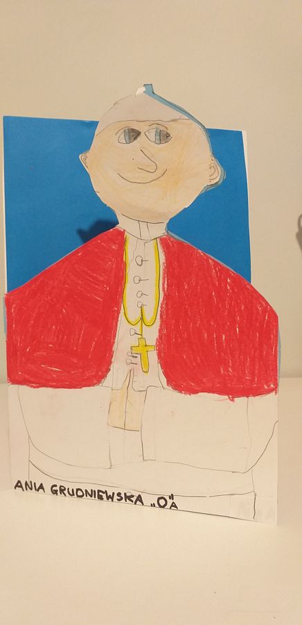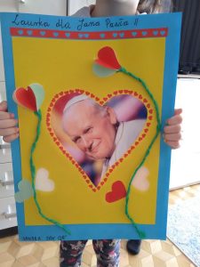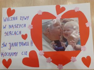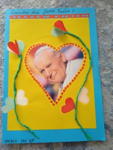 Wszystkie prace plastyczne były pomysłowe, staranne, wymagały kreatywności i dużego nakładu pracy. Uczniowie pięknie recytowali myśli Jana Pawła II oraz wiersze o naszym patronie.