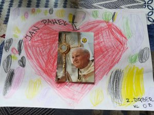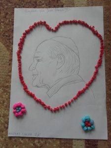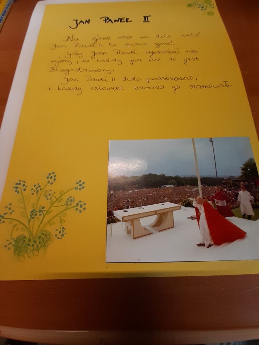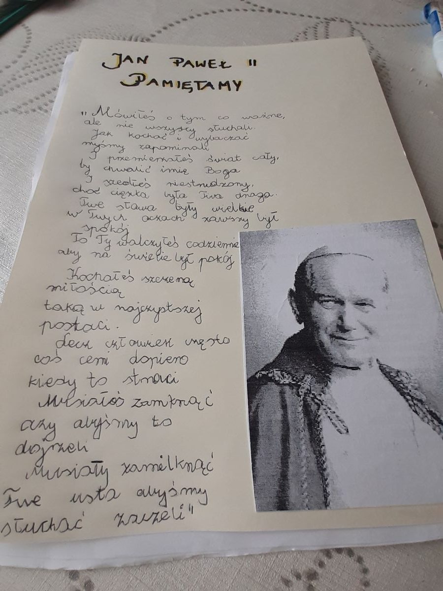 „Świętemu Janowi Pawłowi II – maluję, śpiewam, recytuję i swoje talenty pokazuję!”