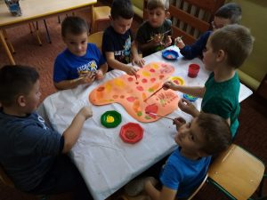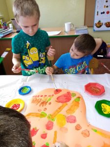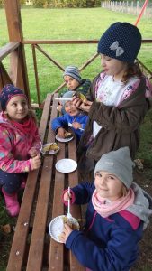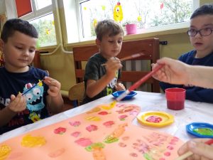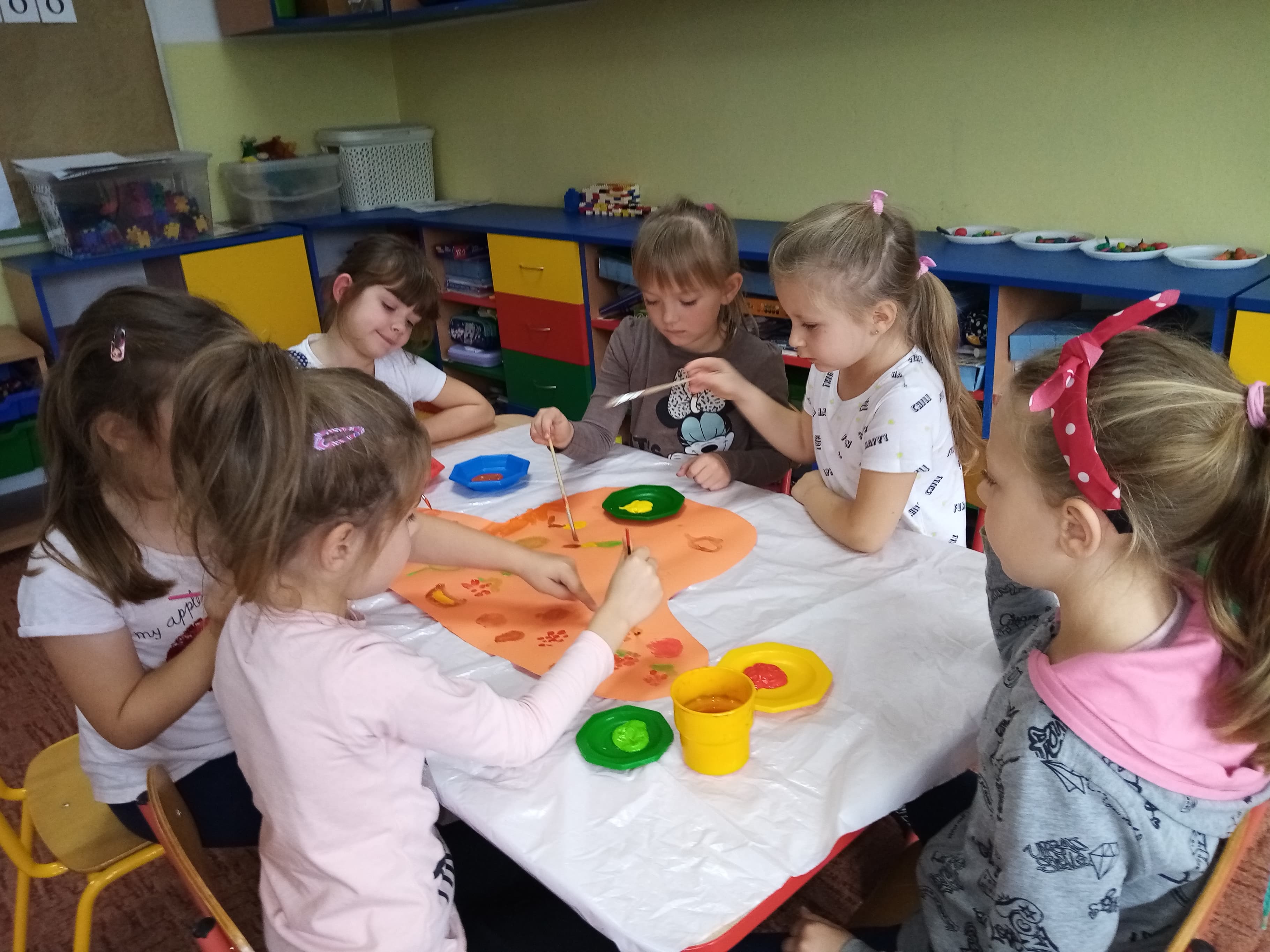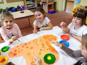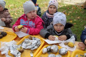 22 października 2020 roku uroczyście powitaliśmy Panią Jesień. Bawiliśmy się na boisku szkolnym, w ognisku piekliśmy ziemniaczki. Wiersze, piosenki i jesienne konkurencje sportowe wprowadziły wszystkich w jesienny nastrój. Był to dzień pełen wrażeń i radości. Na koniec zajęć wykonaliśmy piękne i kolorowe prace plastyczne o tematyce jesiennej, które zdobią przedszkolny korytarz.