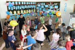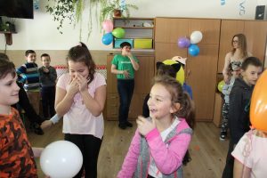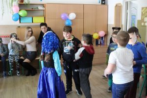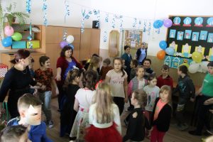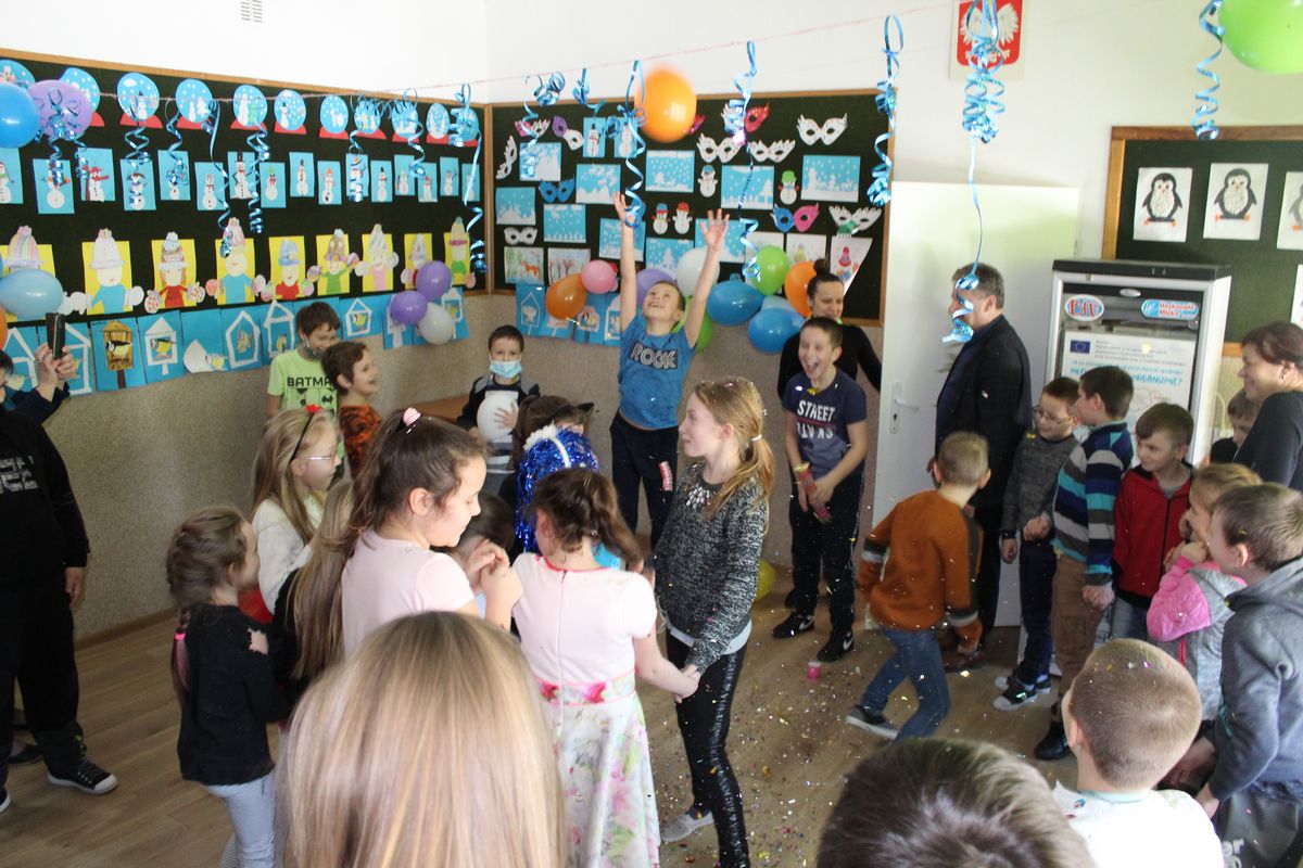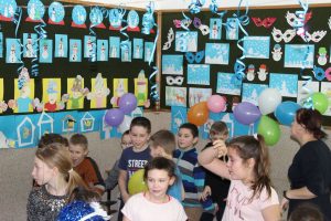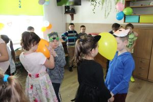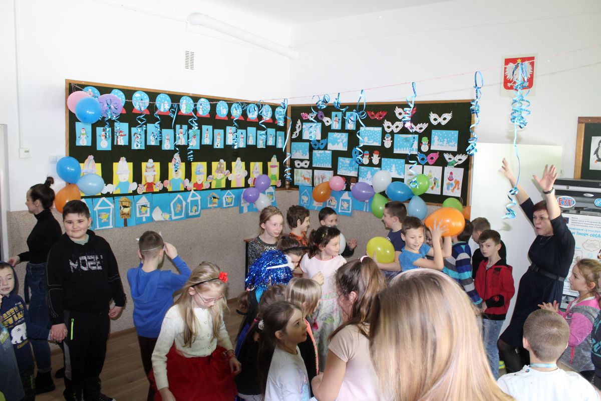 Dokładnie w „Ostatki” odbył się w świetlicy szkolnej bal karnawałowy. Wychowawcy świetlicy dużo wcześniej przyozdobili salę balonami i serpentynami oraz przygotowali odpowiednią muzykę. W tym dniu zajęcia świetlicowe wyglądały trochę inaczej niż zwykle. Na balu nie mogło zabraknąć karnawałowych akcesoriów i gadżetów, które wcześniej przygotowywali uczniowie na zajęciach świetlicowych. Wspaniała zabawa trwała ponad dwie godziny, wszyscy zadowoleni i zmęczeni wracali do domów z uśmiechami na twarzach.