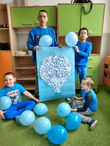 W klasach specjalnych ten wyjątkowy dzień był obchodzony w miniony wtorek. Tego dnia wspólnie wykonaliśmy plakat pt.: „Zaświeć się na niebiesko”, tworzyliśmy niebieski świat i mieliśmy niebieski poczęstunek.