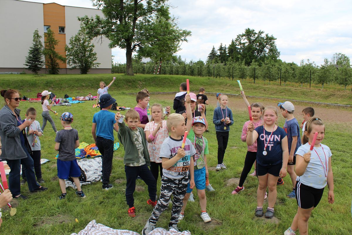 Dnia 1 czerwca 2021 r. w naszej szkole został zorganizowany Dzień Dziecka. Na boisku szkolnym zaczęły się zabawy sportowe i bieg przez tor przeszkód pod hasłem „Bieg Małego Husarza czyli lekcja historii na sportowo” prowadzona przez przedstawicieli Rady Rodziców. Zabawy cieszyły się dużym zainteresowaniem dzieci, zarówno starszych, jak i młodszych. Uczniowie chętnie brali udział w konkurencjach sportowych. Tego dnia wszyscy byli wygranymi, ponieważ otrzymali medale i poczęstunek w postaci lodów i słodyczy. Były też kiełbaski pieczone nad ogniskiem. Wszystkim dopisywały wspaniałe humory.
