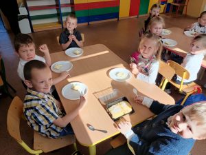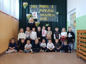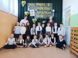 W poniedziałek nasza szkoła obchodziła Patronalne Święto Szkoły. Co roku nawiązujemy do nauczania Jana Pawła II, który cenił sobie miłość do drugiego człowieka. Oddziały przedszkolne czynnie włączyły się w obchody tego święta. Tradycyjnie rozpoczęliśmy od wykonania prac plastycznych związanych z postacią Jana Pawła II. Następnie dzieci wspólnie zaśpiewały piosenkę zatytułowaną ”Kochamy Cię”. Świętowanie zakończyliśmy degustacją pysznych kremówek, które nasz patron uwielbiał.