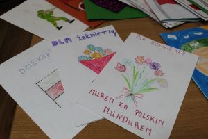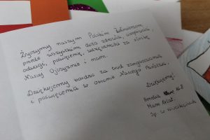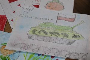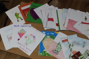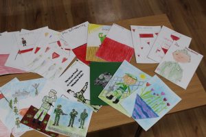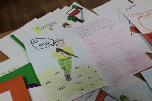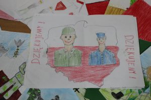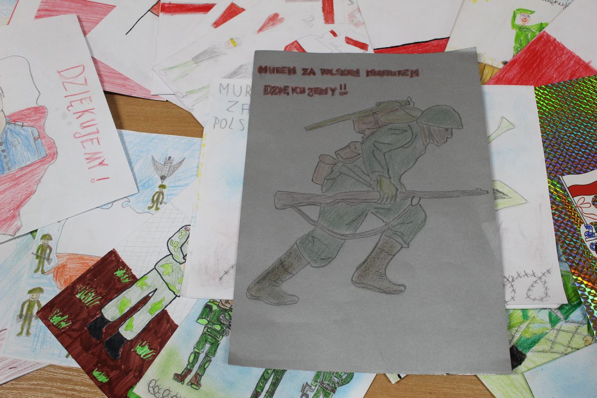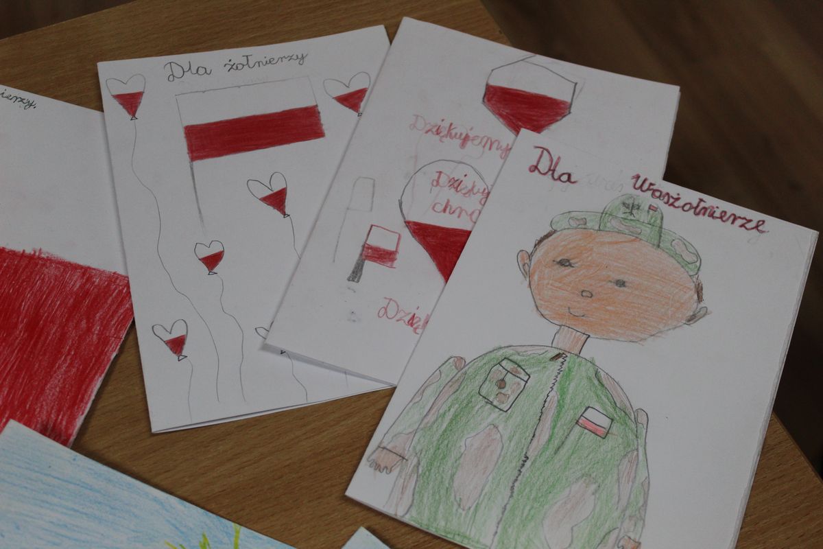 Dzieci z grup przedszkolnych oraz uczniowie naszej szkoły dołączyli do akcji przygotowania kartek z pozdrowieniami i wyrazami wsparcia dla żołnierzy Sił Zbrojnych RP oraz funkcjonariuszy Straży Granicznej i Policji, którzy pełnią służbę na naszej wschodniej granicy. Organizatorem przedsięwzięcia jest lubelska Fundacja Niepodległości.
