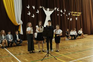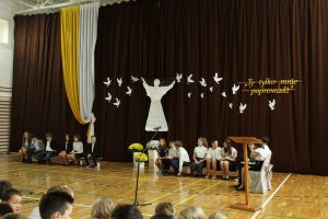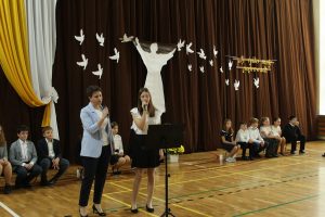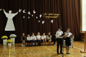 Akademia stanowiła wspomnienie najważniejszych chwil z życia naszego Świętego Przewodnika. Motto „Ty tylko nas poprowadź…” kierowało myśli ku uniwersalnym pokładom nauki Papieża-Polaka, największego autorytetu pokoleń. Mądrość Patrona zawsze zjednywała ludzi różnych wyznań, narodowości i przekonań, krzewiła miłość i pojednanie. Skromność Papieża, a jednocześnie poczucie humoru, a także Jego zamiłowanie do dzieci, sportu, muzyki, teatru i gór wyróżniały Go spośród wielu… I właśnie takiego Cię pamiętamy!
