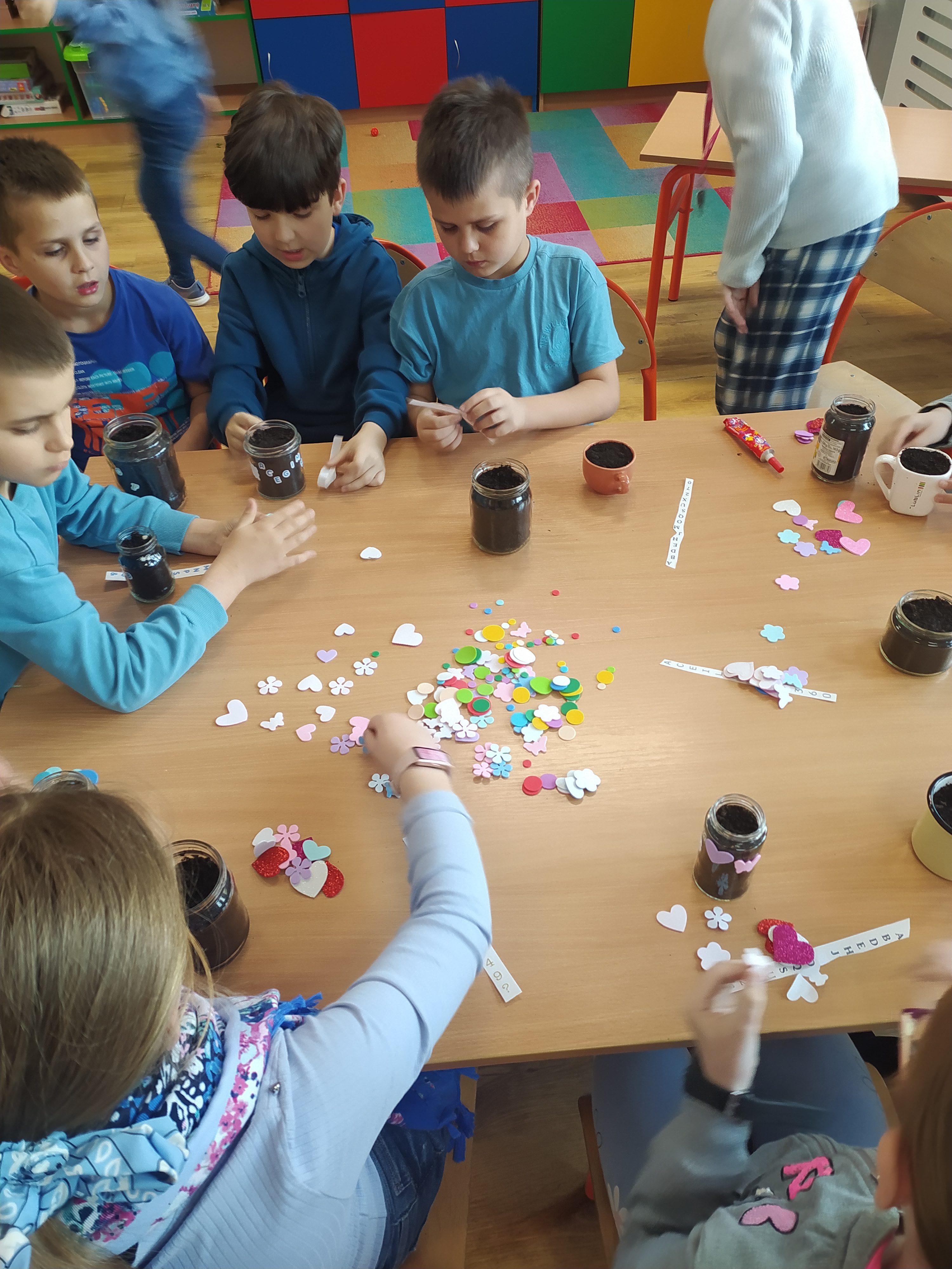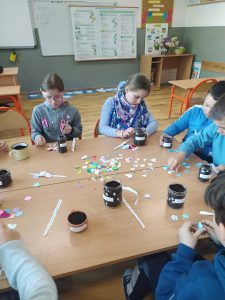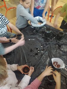 Uczniowie klasy IIa przynieśli z domów szklane słoiczki, pięknie je ozdobili i zasiali lub zasadzili ziarenka czytelnictwa, z których wyrosną: „mądrość”, „miłość”, „wiedza” „nadzieja”, „szczęście”, „prawda”.