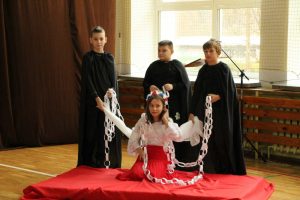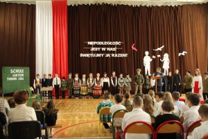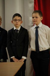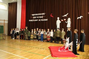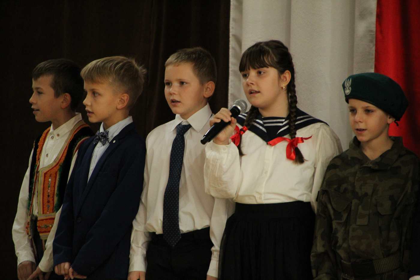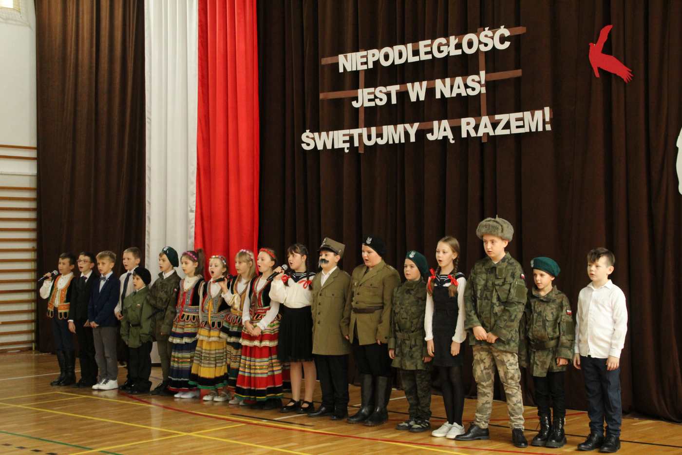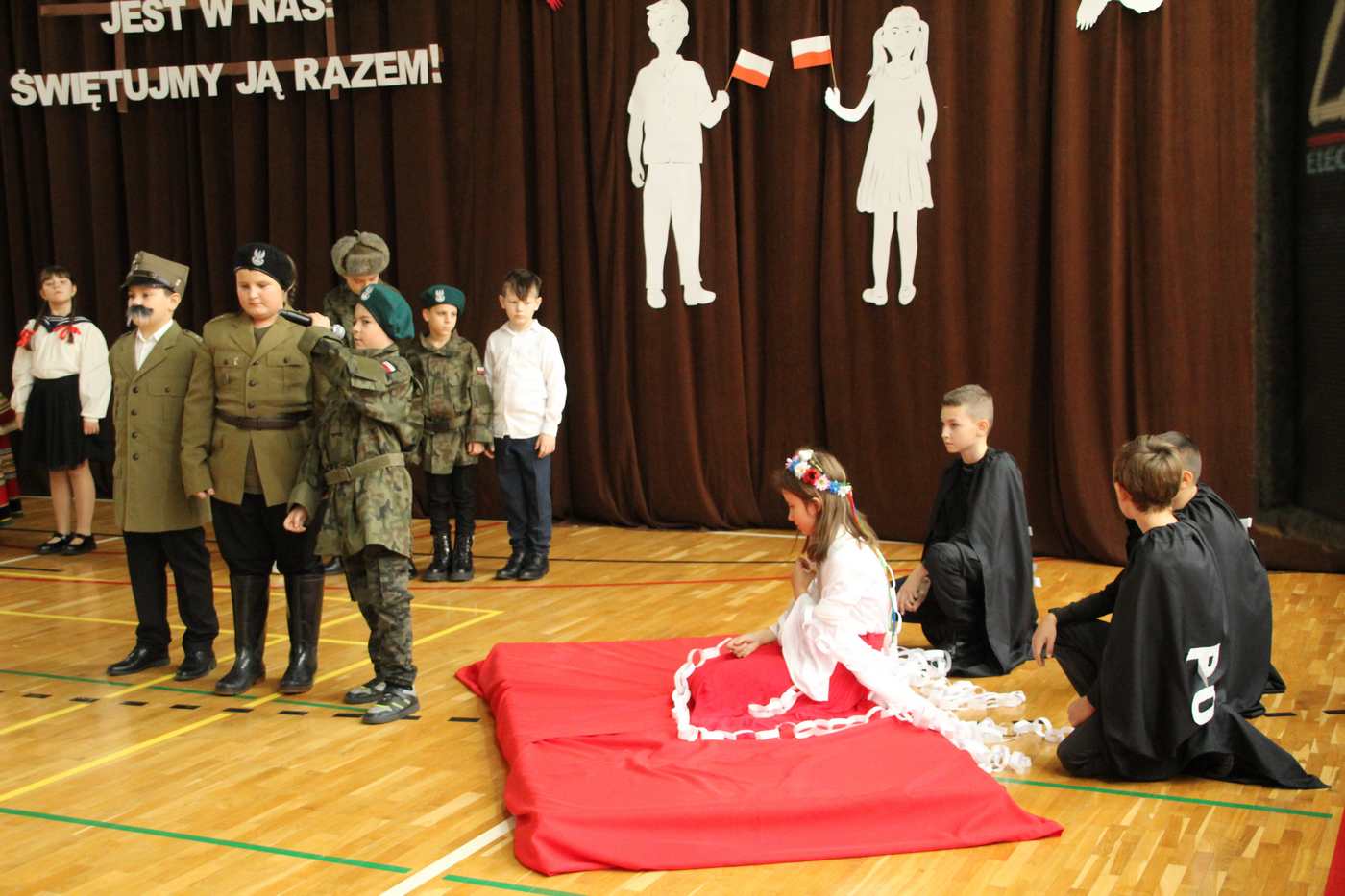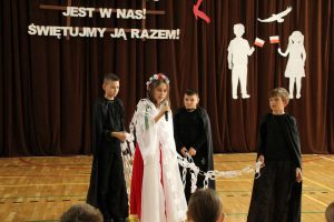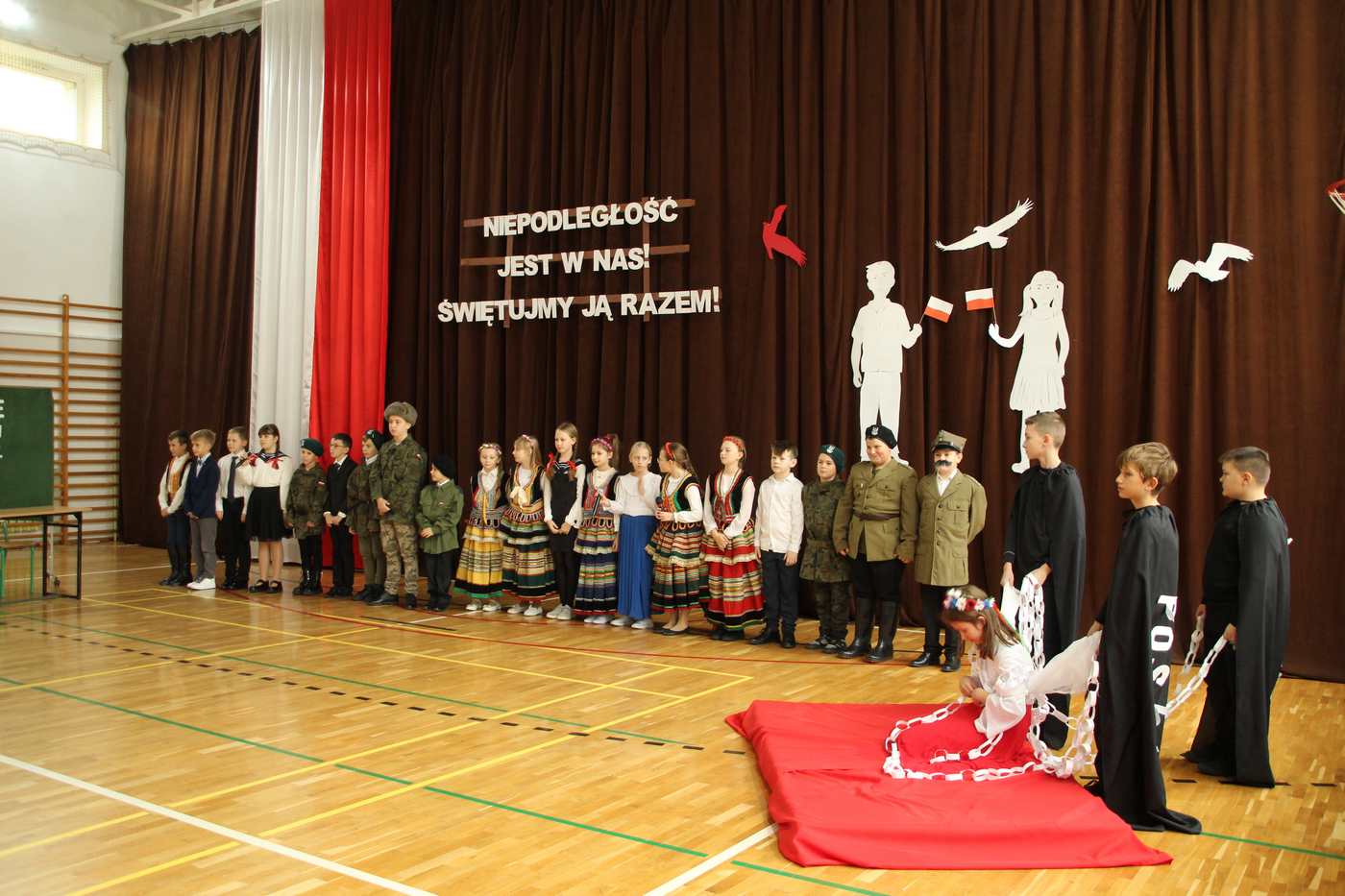 Patriotyczną akademię z okazji Święta Niepodległości przygotowali uczniowie klas czwartych wraz z wychowawczyniami. Dzięki pięknym strojom i dekoracji przenieśliśmy się do roku 1918, kiedy to Polska odzyskiwała niepodległość. Uczniowie z wielkim zaangażowaniem wczuli się w swoje role i dostali długie oklaski na stojąco.
