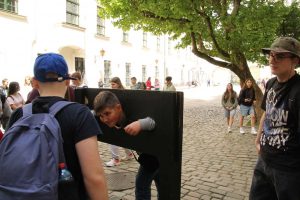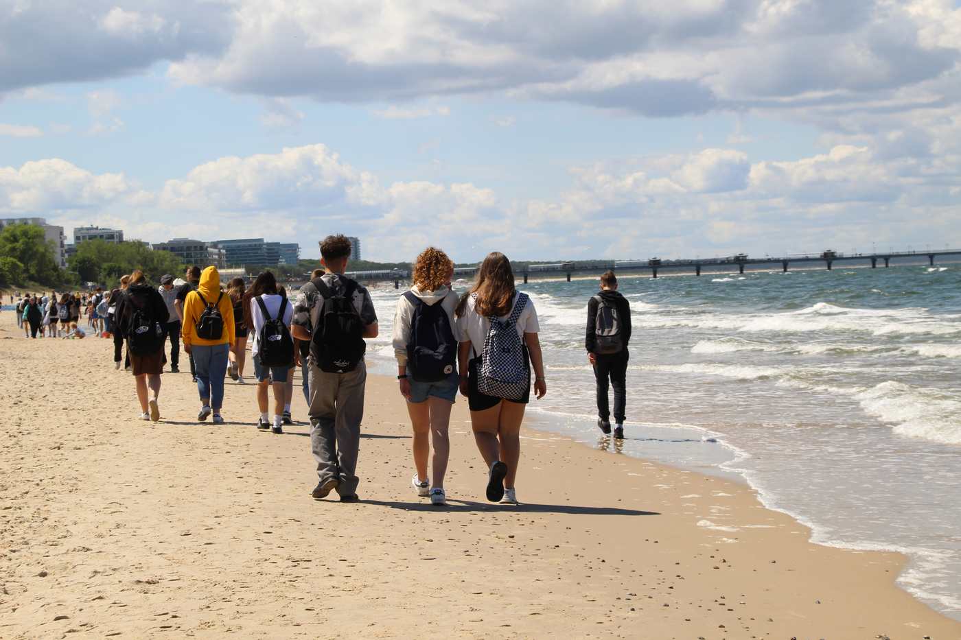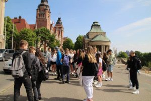 Pierwszego dnia przed południem zajechaliśmy do Szczecina, gdzie poznaliśmy ciekawe oraz historyczne miejsca. Pani przewodnik oprowadziła nas po Starym Mieście, przekazując wiele informacji. Zobaczyliśmy miejsce legalnych graffiti i murali, które zdobią miasto. Aż trzy godziny spędziliśmy w Muzeum Morskim. To interesujące miejsce, którego sercem jest wystawa składająca się w przeważającej większości z interaktywnych, samoobsługowych eksponatów umożliwiających samodzielne przeprowadzanie doświadczeń. Uczniowie byli zachwyceni takim muzeum. Wieczorem zajechaliśmy do Międzyzdrojów, gdzie przez trzy dni mieliśmy nocleg.