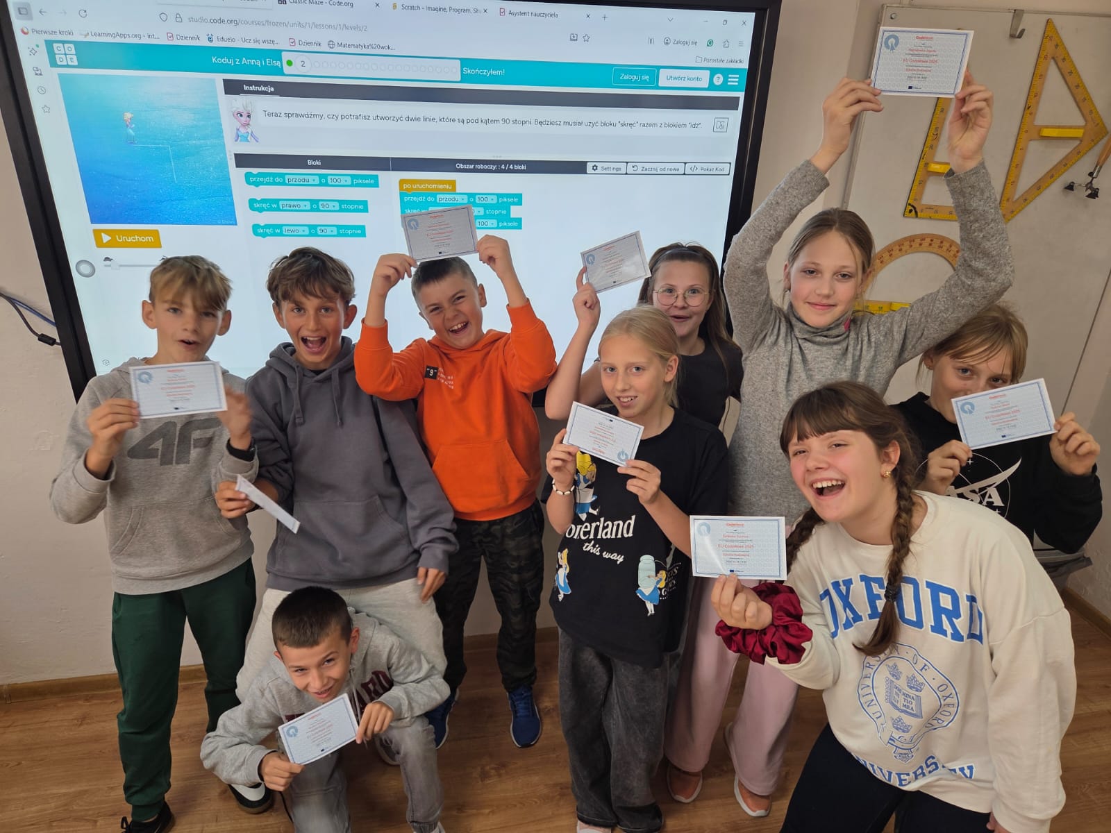 W dniach 15–24 października nasza szkoła włącza się w Europejski Tydzień Kodowania (Code Week 2025). Już dziś klasy IV i V uczestniczyły w warsztatach z programowania w Scratch i kodowali razem z bajkowymi bohaterkami Anną i Elzą.