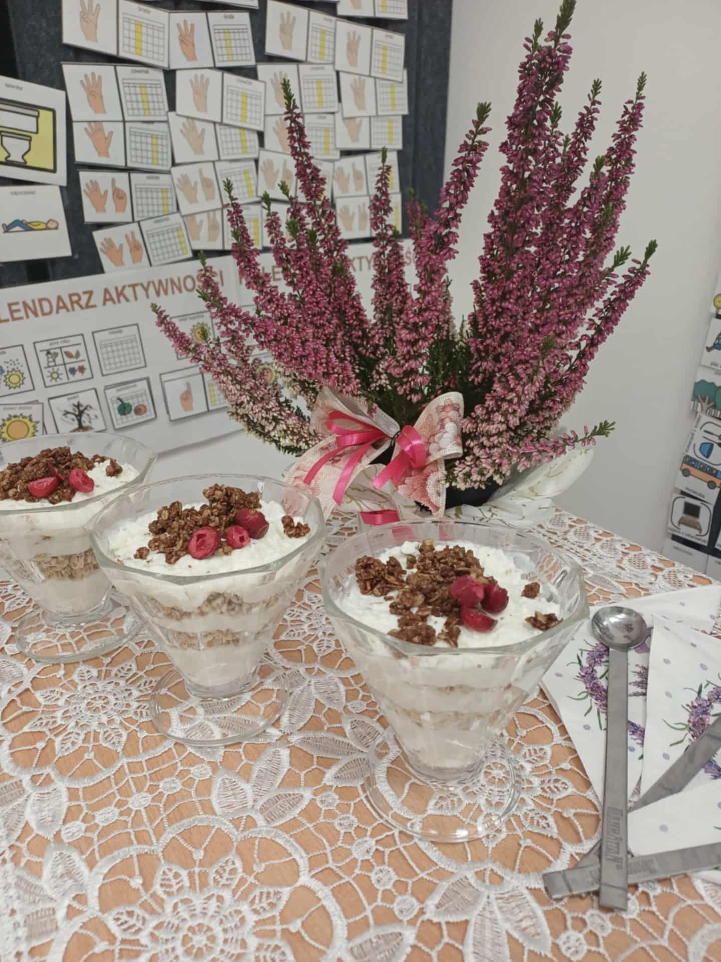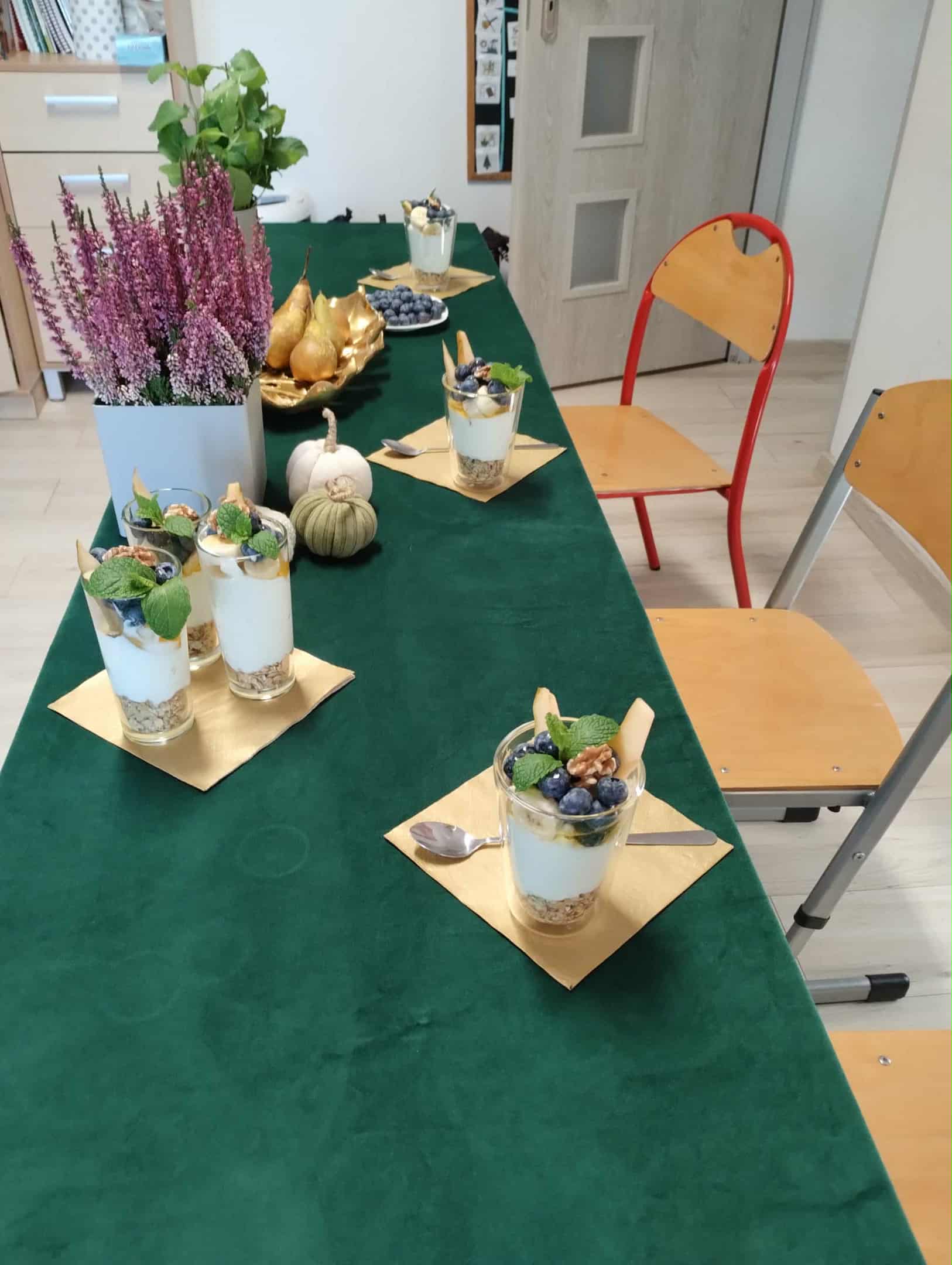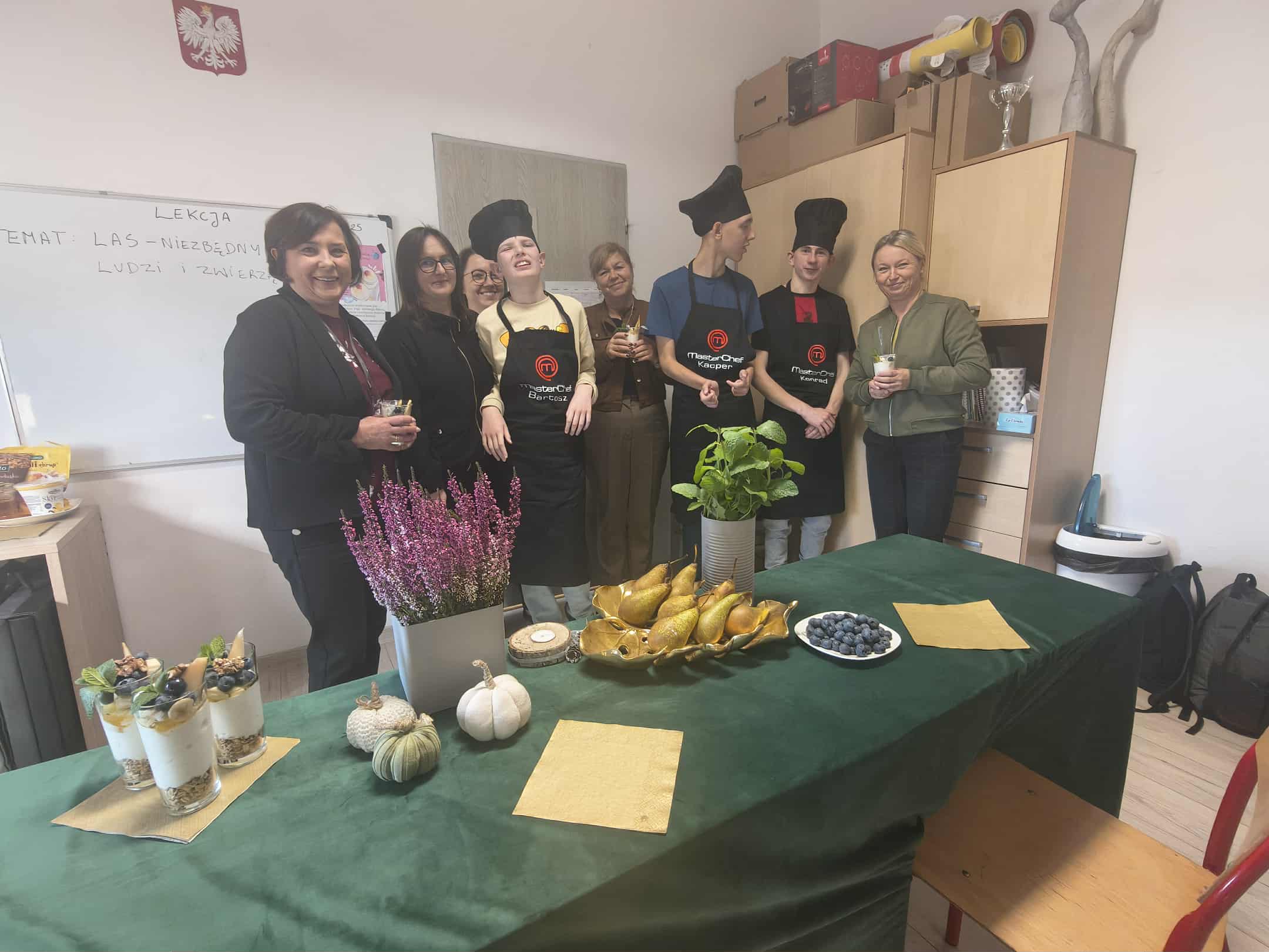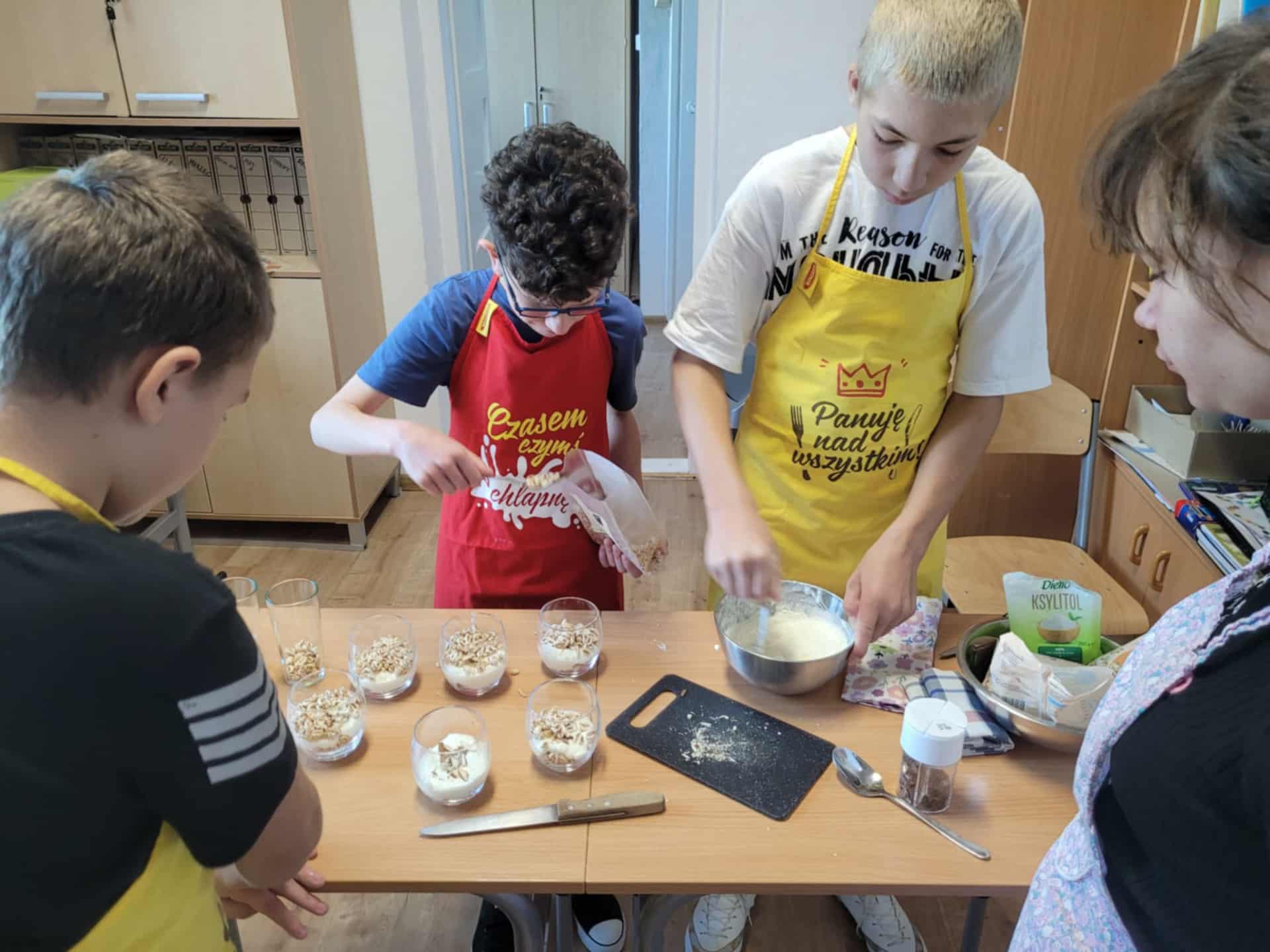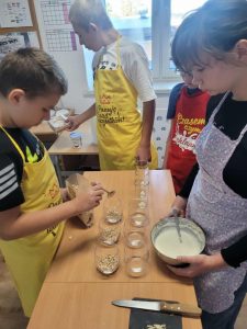 W klasach specjalnych odbył się wyjątkowy konkurs kulinarny pod hasłem „Deser przygotowuje – zdrowy tryb promuje”, którego celem było połączenie przyjemności tworzenia słodkości z promowaniem zdrowego stylu życia. Uczestnicy – zarówno uczniowie jak i wychowawcy – mieli za zadanie przygotować własny deser, wykorzystując naturalne, pełnowartościowe składniki. Podczas konkursu nie zabrakło kreatywności, kolorów i smaków. Powstały desery oparte na świeżych owocach, produktach pełnoziarnistych, jogurtach i zdrowych zamiennikach cukru. Jury oceniało nie tylko walory smakowe, ale także estetykę podania oraz zgodność z ideą zdrowego odżywiania. Wydarzenie miało na celu zachęcenie uczestników do świadomych wyborów żywieniowych i pokazanie, że zdrowe desery mogą być równie pyszne i efektowne jak ich tradycyjne odpowiedniki. Konkurs okazał się inspirującą okazją do wspólnej zabawy, nauki i wymiany pomysłów.