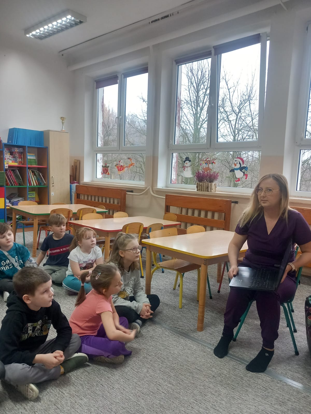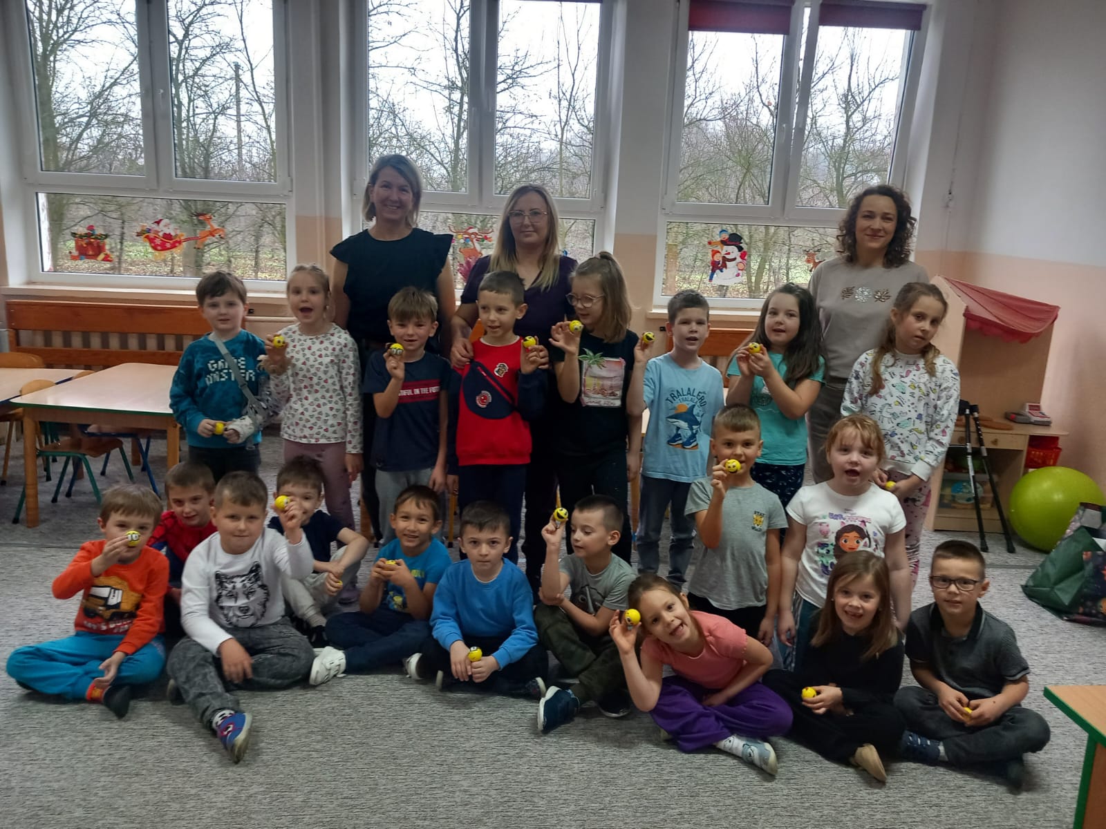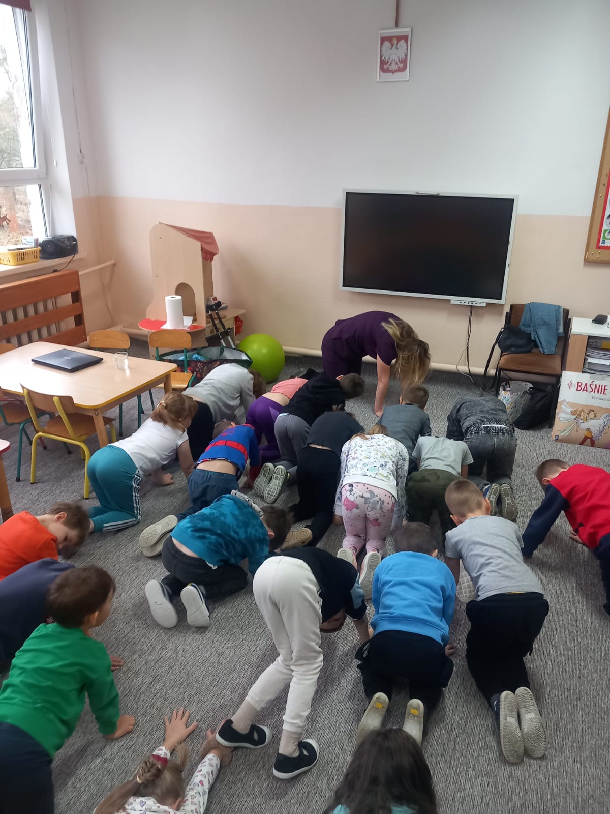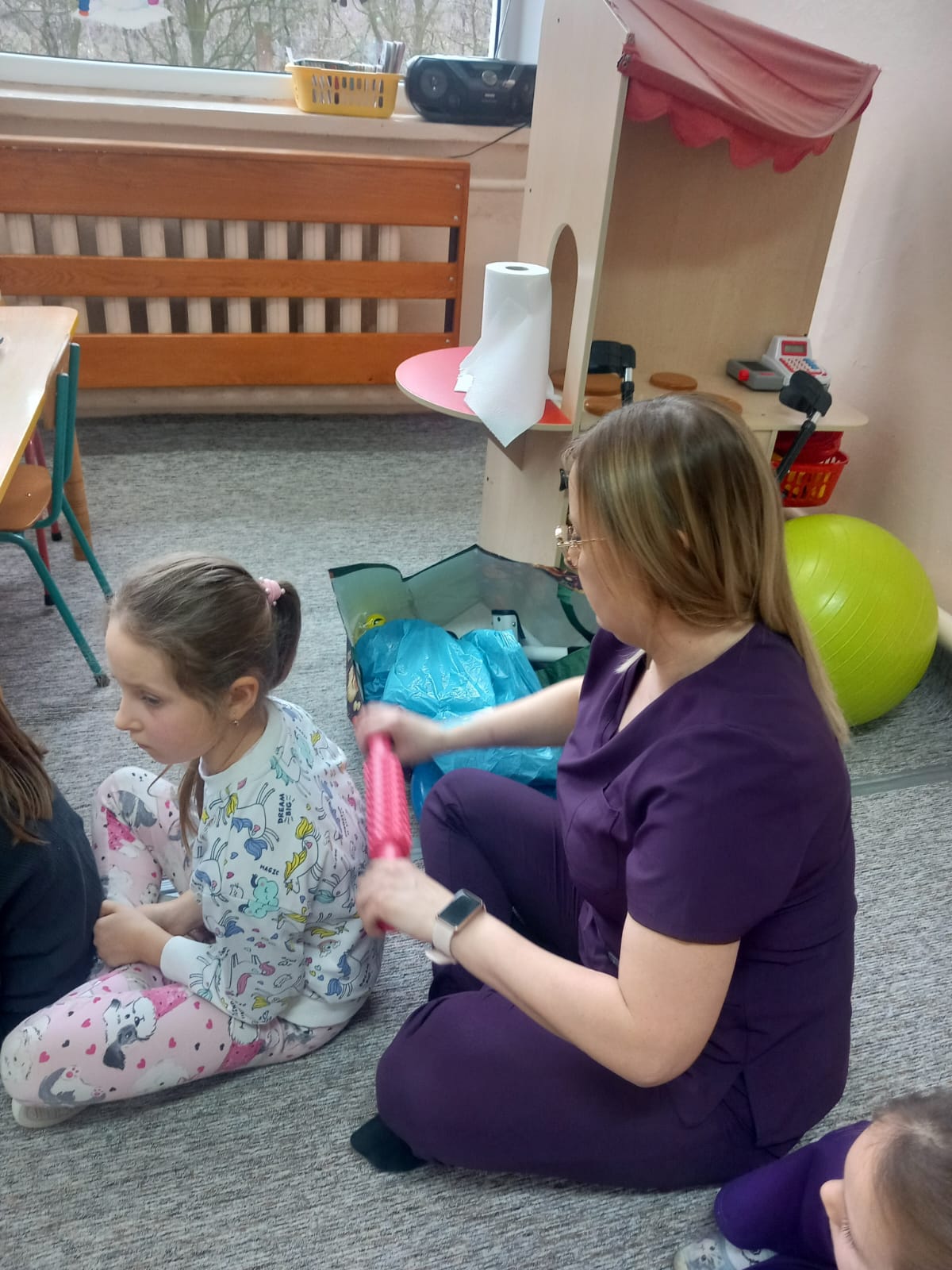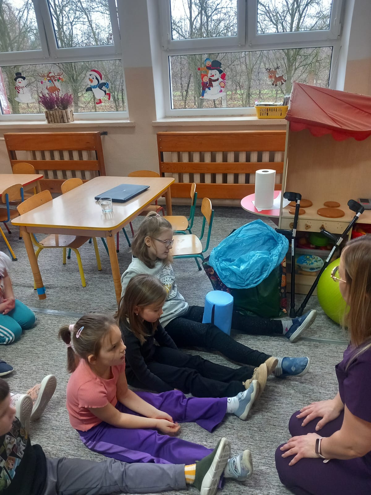 W dniu 2 grudnia w naszym przedszkolu odbyło się spotkanie z panią Małgorzatą Madej-Burek, która jest fizjoterapeutką. Celem spotkania było przybliżenie dzieciom tego zawodu. Nasz gość opowiedział przedszkolakom, na czym polega jego praca oraz komu pomaga na co dzień. Dzieci dowiedziały się, że fizjoterapeuta pomaga osobom po urazach, operacjach oraz tym, które mają trudności z poruszaniem się. W przystępny sposób pani Małgosia wyjaśniła również, jak ważne są ćwiczenia fizyczne, ruch i prawidłowa postawa ciała dla zdrowia. Podczas spotkania pani fizjoterapeutka zaprezentowała proste ćwiczenia ruchowe oraz pokazała niektóre przyrządy wykorzystywane w swojej pracy. Przedszkolaki chętnie uczestniczyły w ćwiczeniach i z zainteresowaniem zadawały pytania. Spotkanie przebiegło w bardzo miłej atmosferze i było dla dzieci ciekawą lekcji. Dzięki wizycie przedszkolaki wzbogaciły swoją wiedzę i dowiedziały się, jak ważna jest aktywność fizyczna w codziennym życiu. Bardzo serdecznie dziękujemy pani Małgosi za ciekawą prelekcję oraz prezenty dla dzieci w postaci piłeczek.