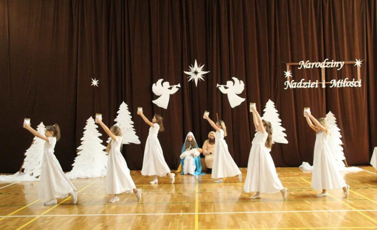 Życzeniami wesołych i spokojnych Świąt od pana dyrektora rozpoczęliśmy piątkowe wspólne kolędowanie. W nastrój świąteczny wprowadzili nas uczniowie klas czwartych …